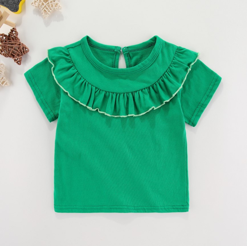 여름 소녀 면 러플 티셔츠 아기 소녀 크루넥 캐주얼 탑 아마존 크로스 보더 INS 핫 세일