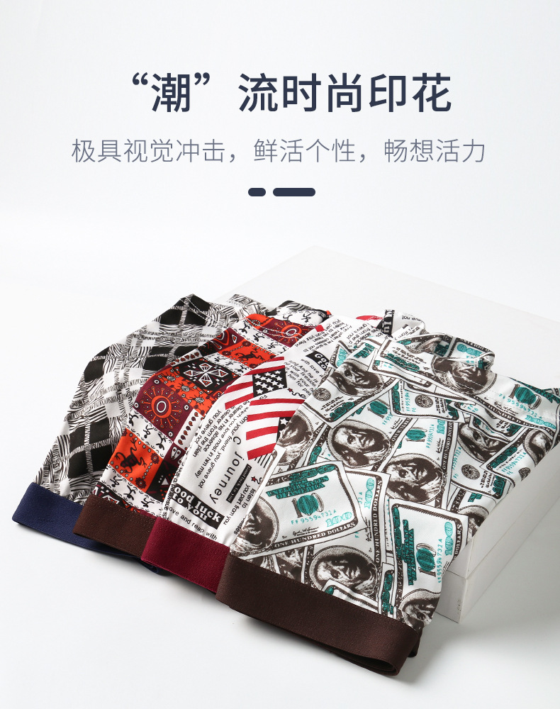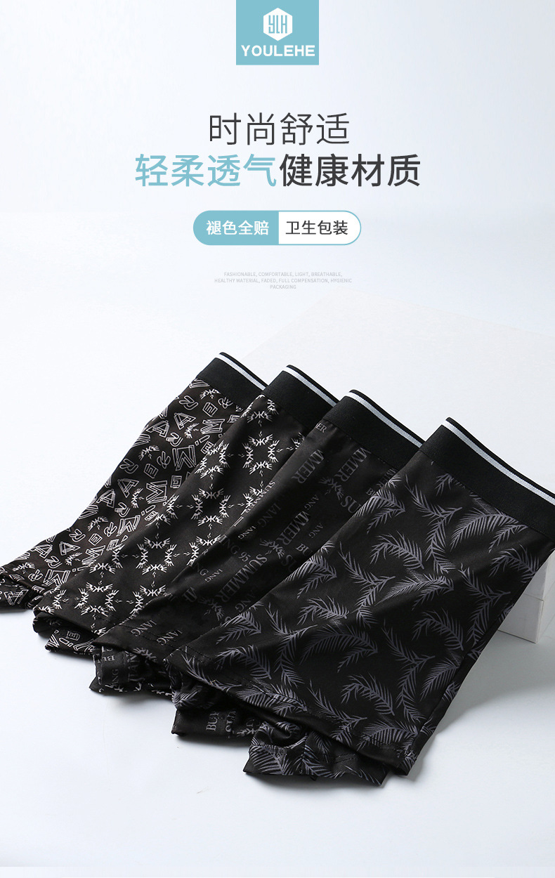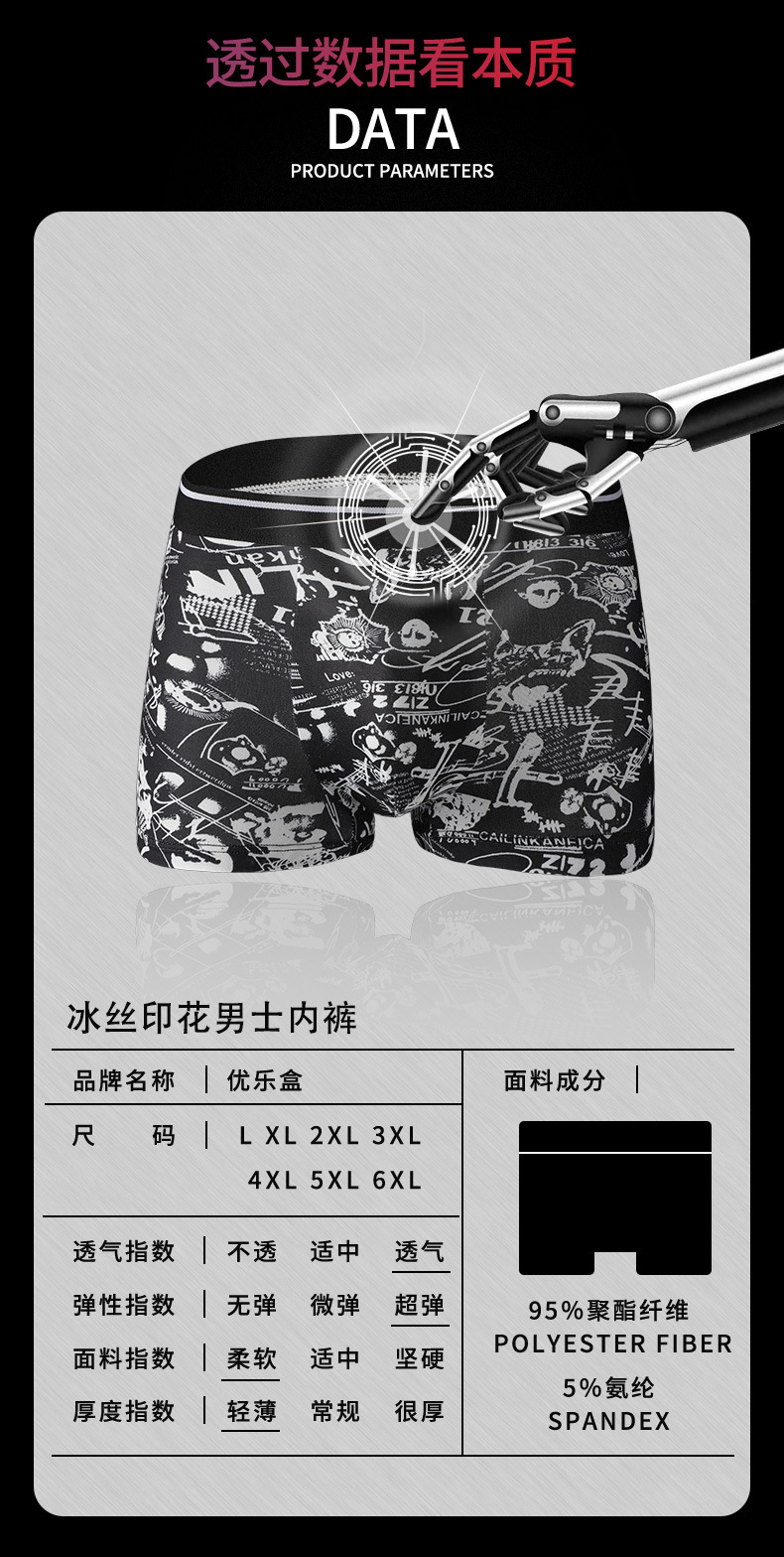 여름 남성 속옷 얼음 실크 대형 와이드 챙 유행 맞춤형 인쇄 대형 고탄성 복서 반바지 도매스토어 가기