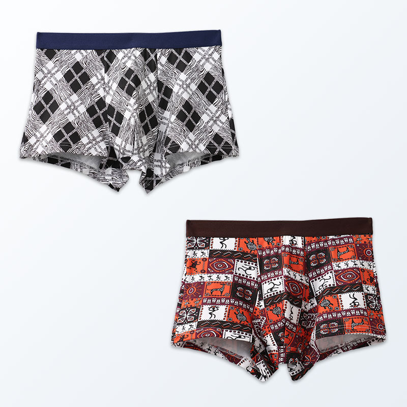 여름 남성 속옷 얼음 실크 대형 와이드 챙 유행 맞춤형 인쇄 대형 고탄성 복서 반바지 도매