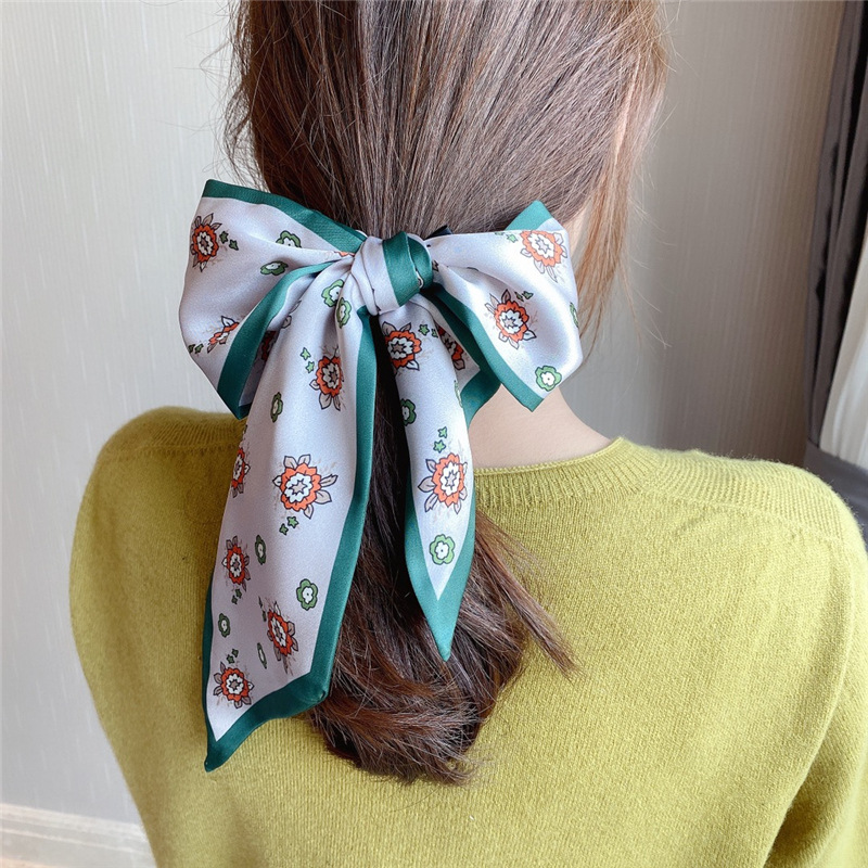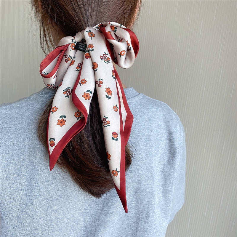 에스닉 스타일 스몰 플로럴 더블 레이어 롱 슬림 스몰 실크 스카프 리본 여성용 올 매치 이른 봄 액세서리 스카프 타이 백스토어 가기