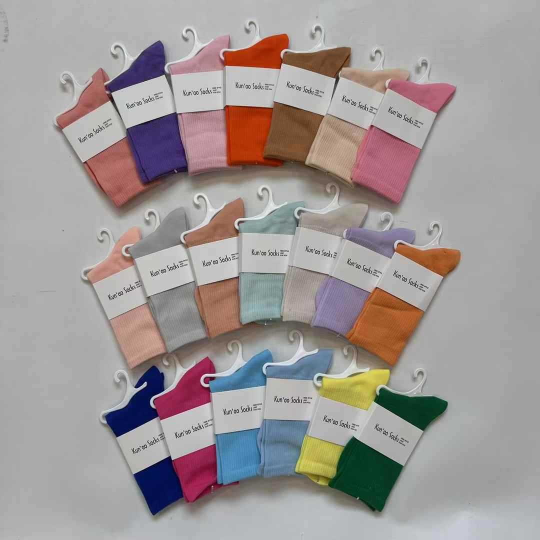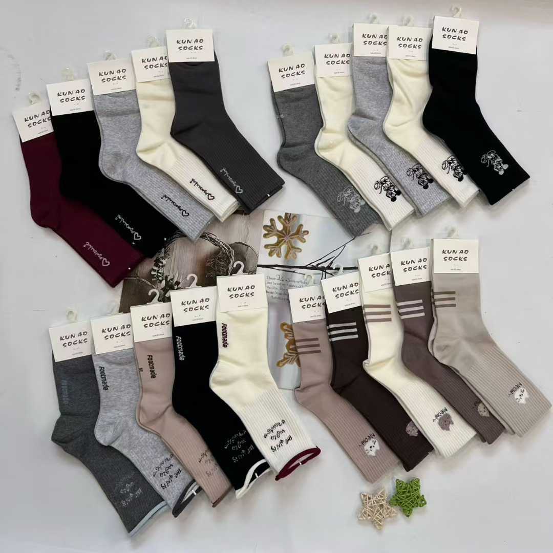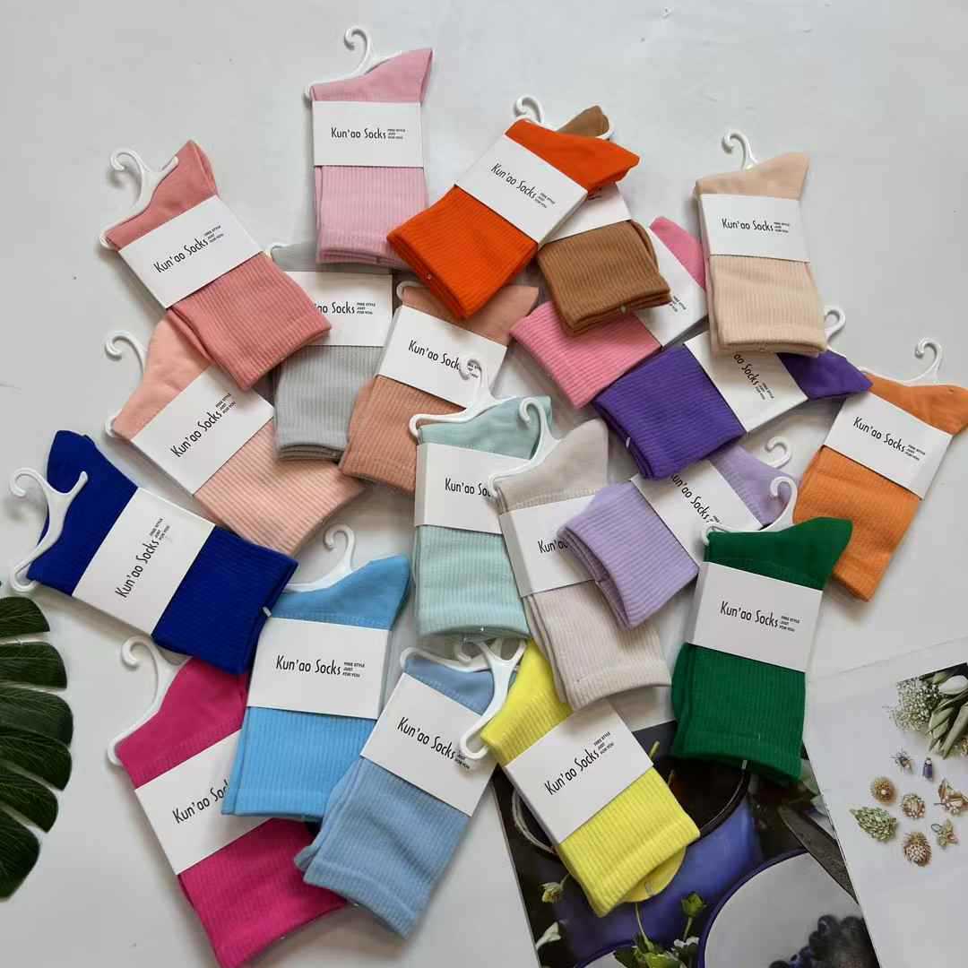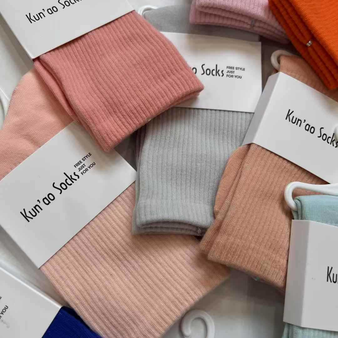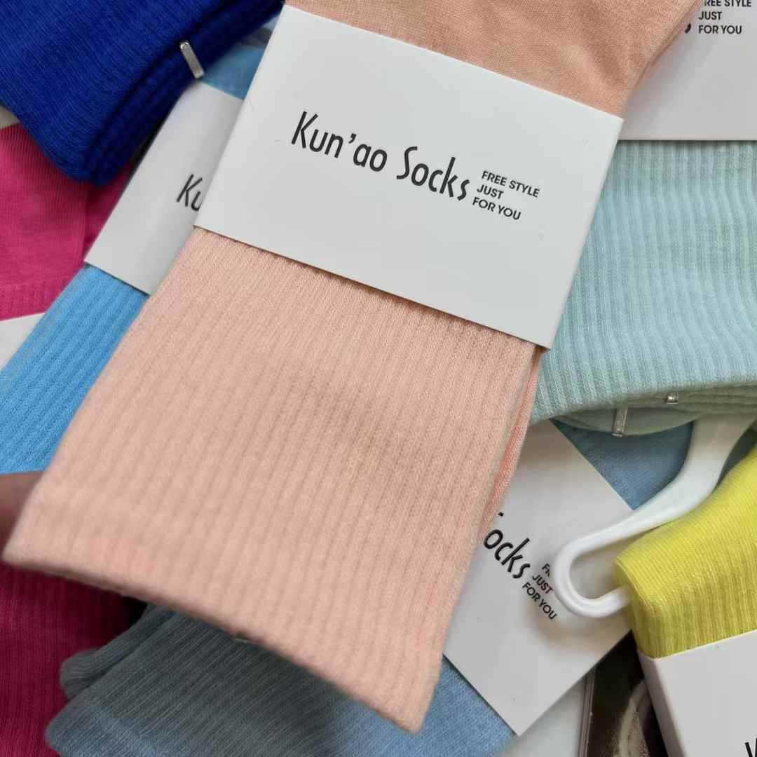 쿤아오 남녀 양말 봄가을 코마면 중간 길이 여성 양말 고탄력 스포츠 트렌디 양말 종아리 양말 재고 8128