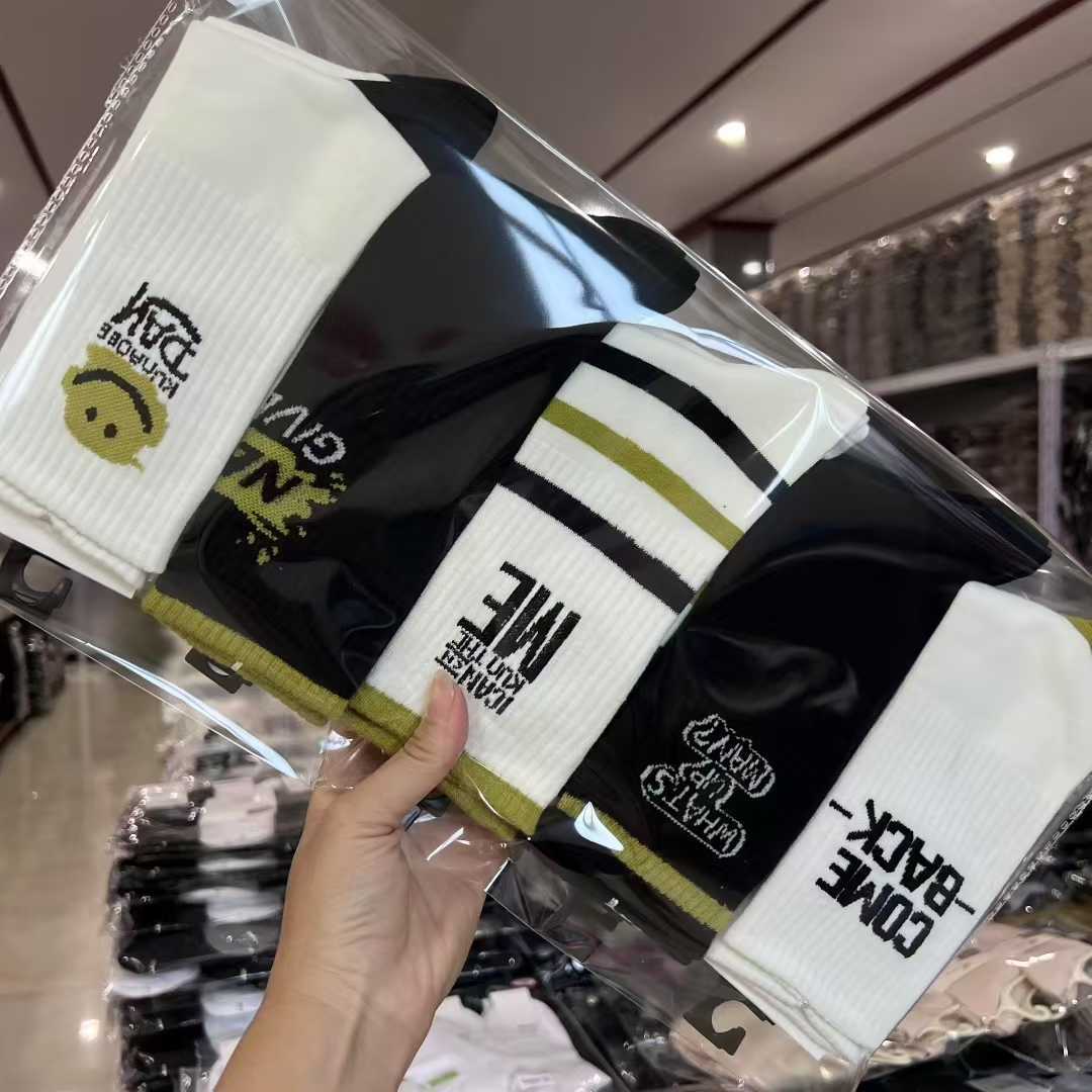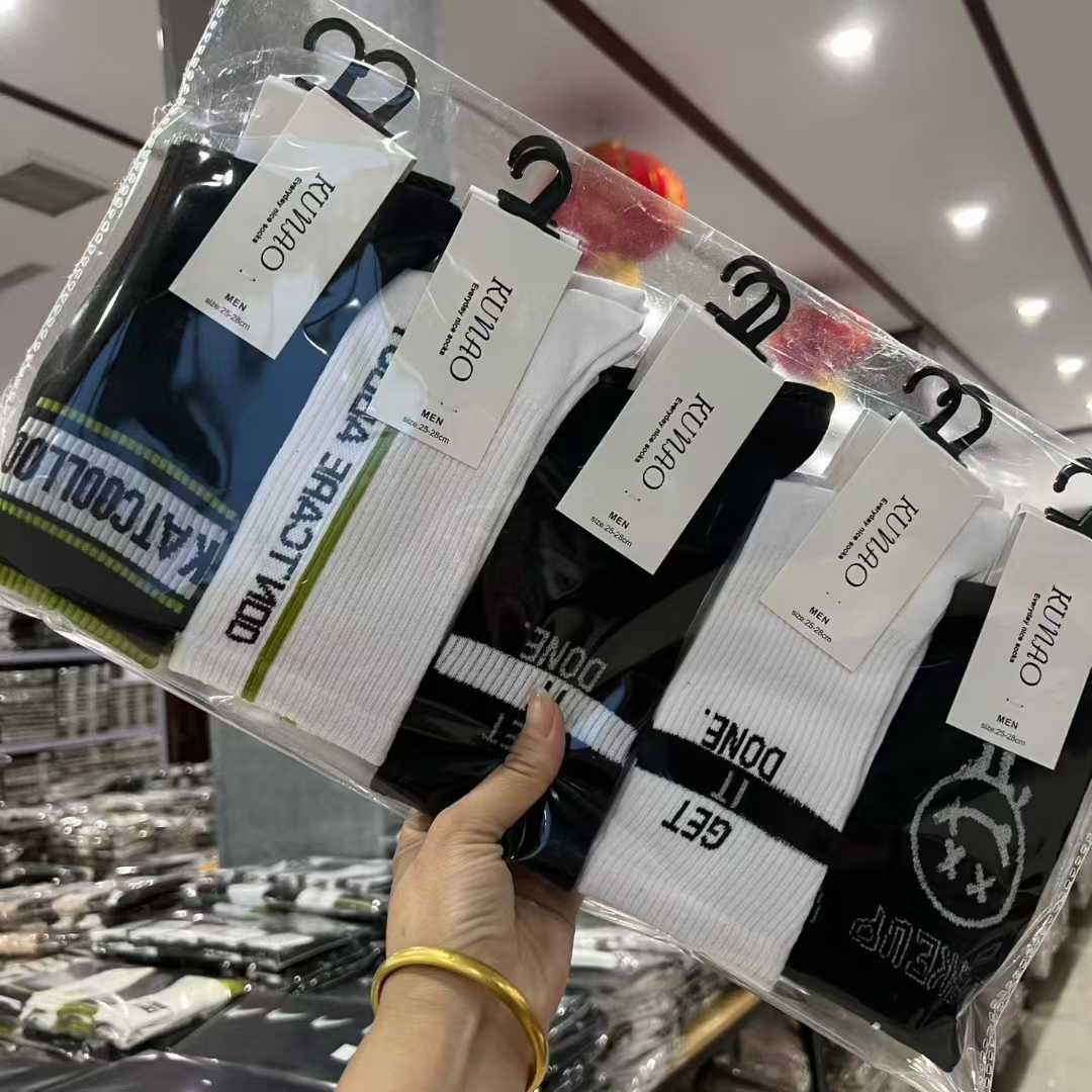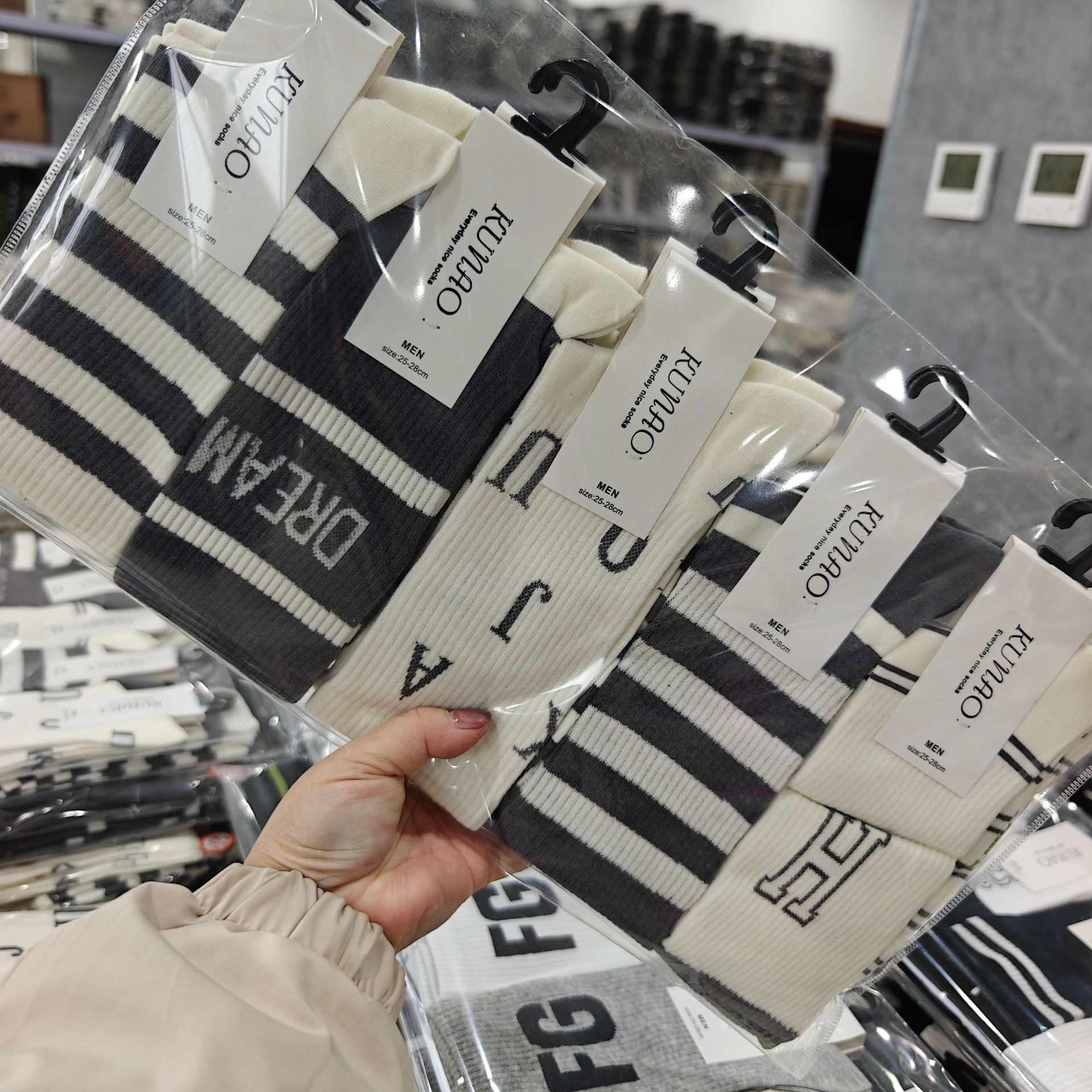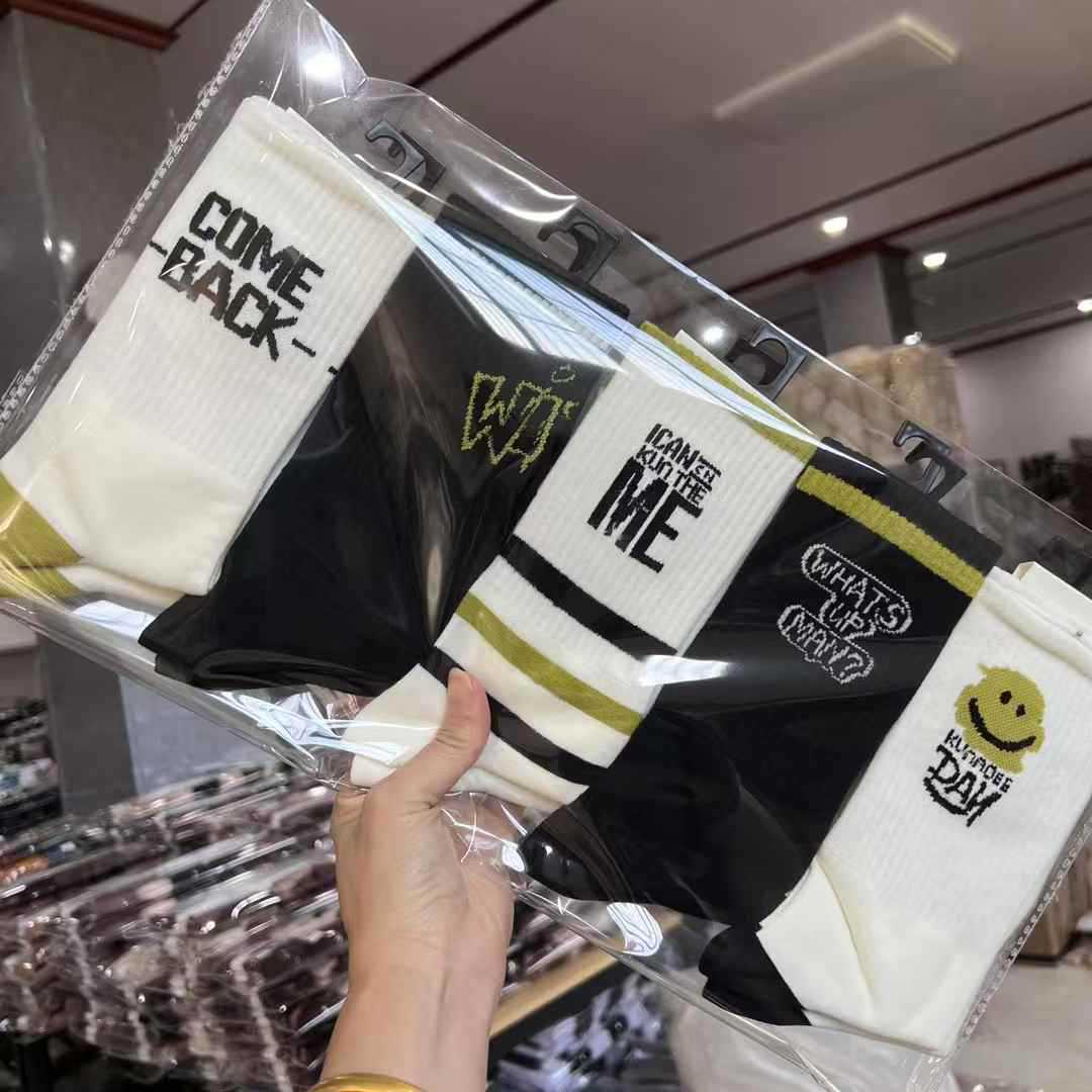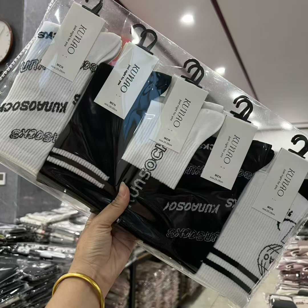 쿤아오 남녀 양말 봄가을 코마면 중간 길이 여성 양말 고탄력 스포츠 트렌디 양말 종아리 양말 재고 8128