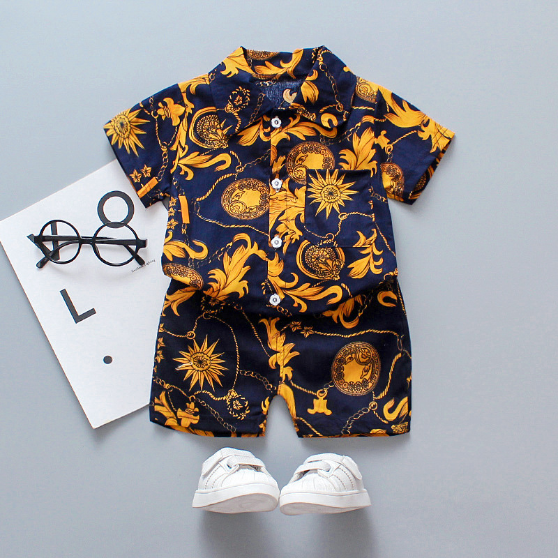 새로운 대외 무역 아동복 소년의 여름 반팔 셔츠 세트 해변 패션 잘 생긴 아기 투피스 유행 헤어 생성스토어 가기