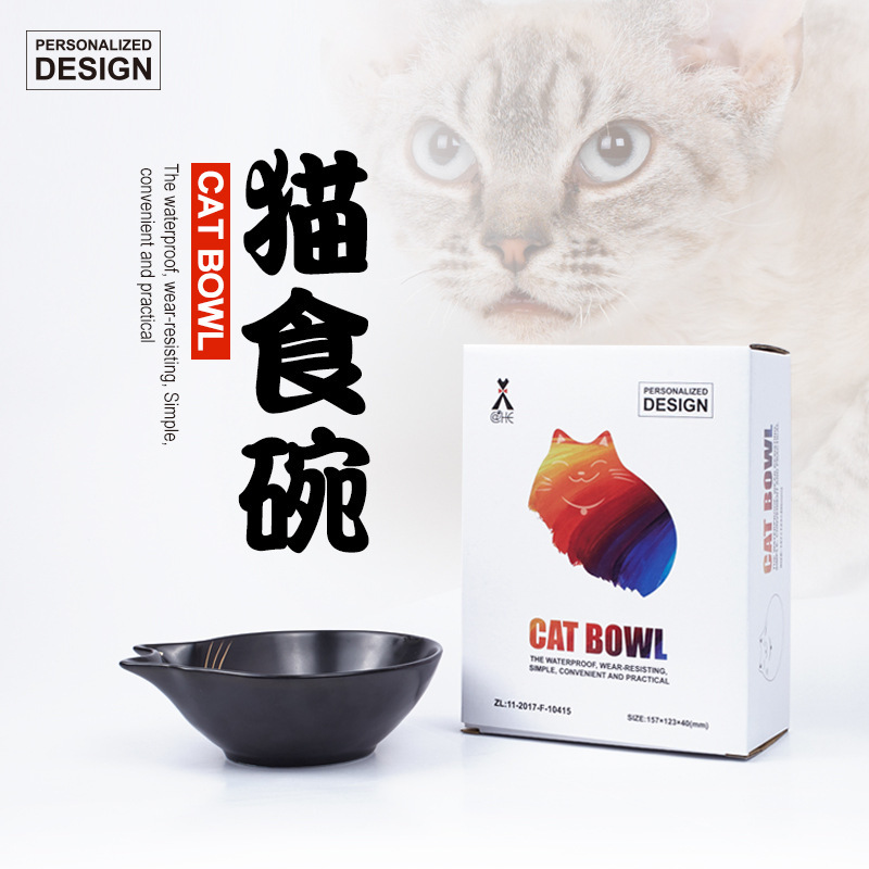 고양이 용품 세라믹 고양이 그릇 흑백 그릇 음식 분지 골드 단일 그릇 평면 얼굴 고양이 음식 그릇 고양이 음식 그릇 재고스토어 가기