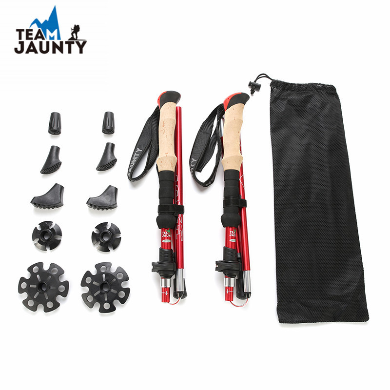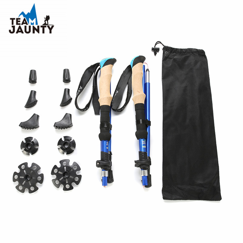 跨境热销7075铝合金高强轻便五节折叠登山杖套装