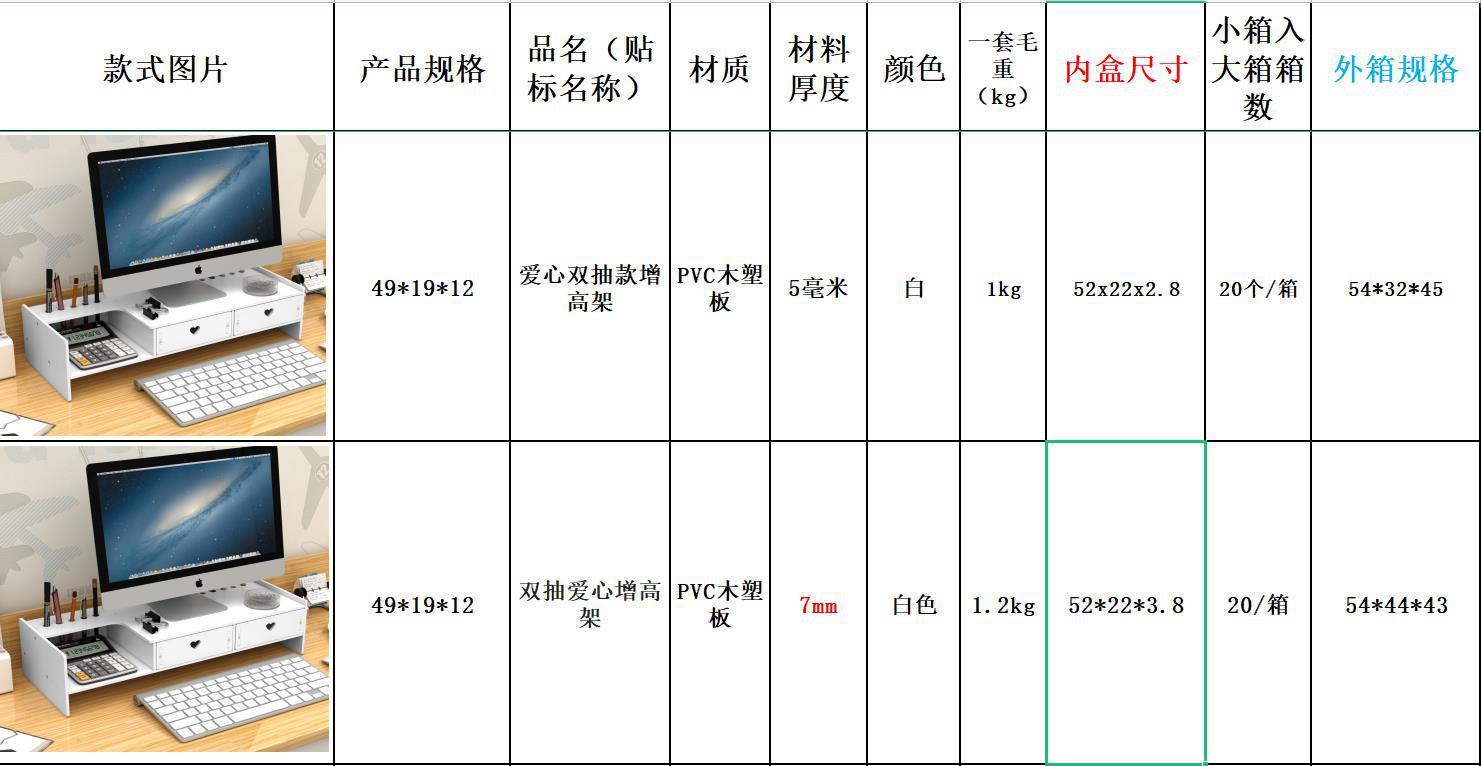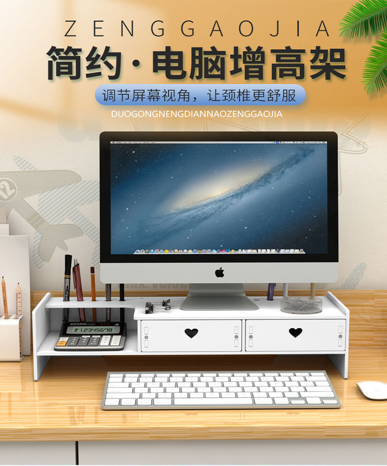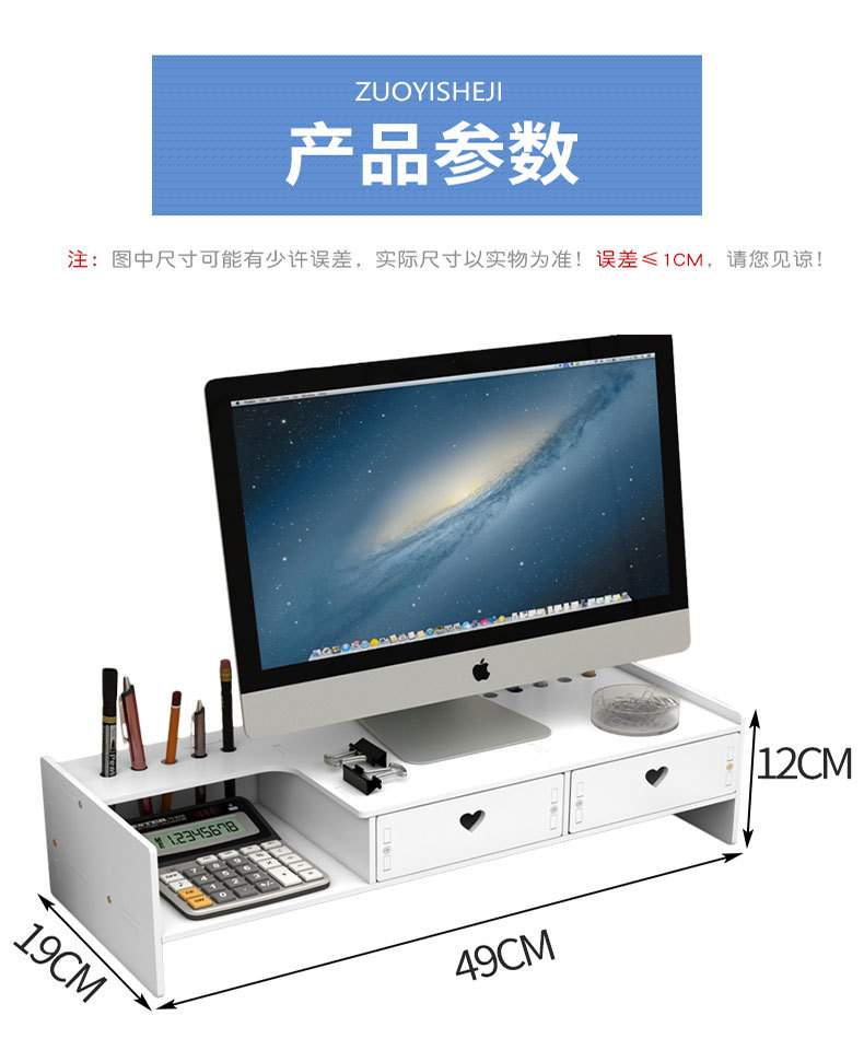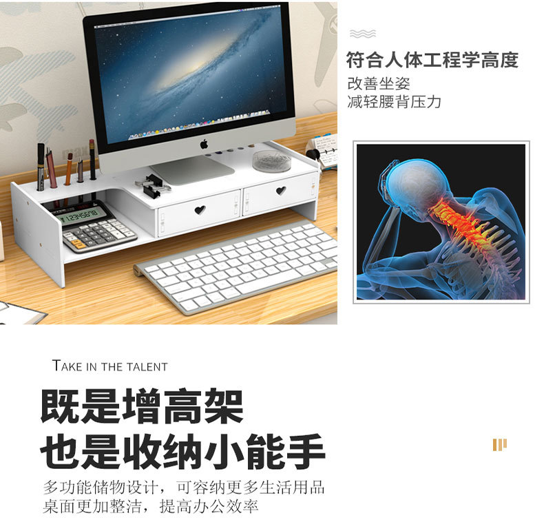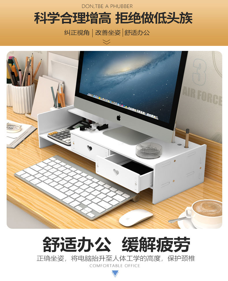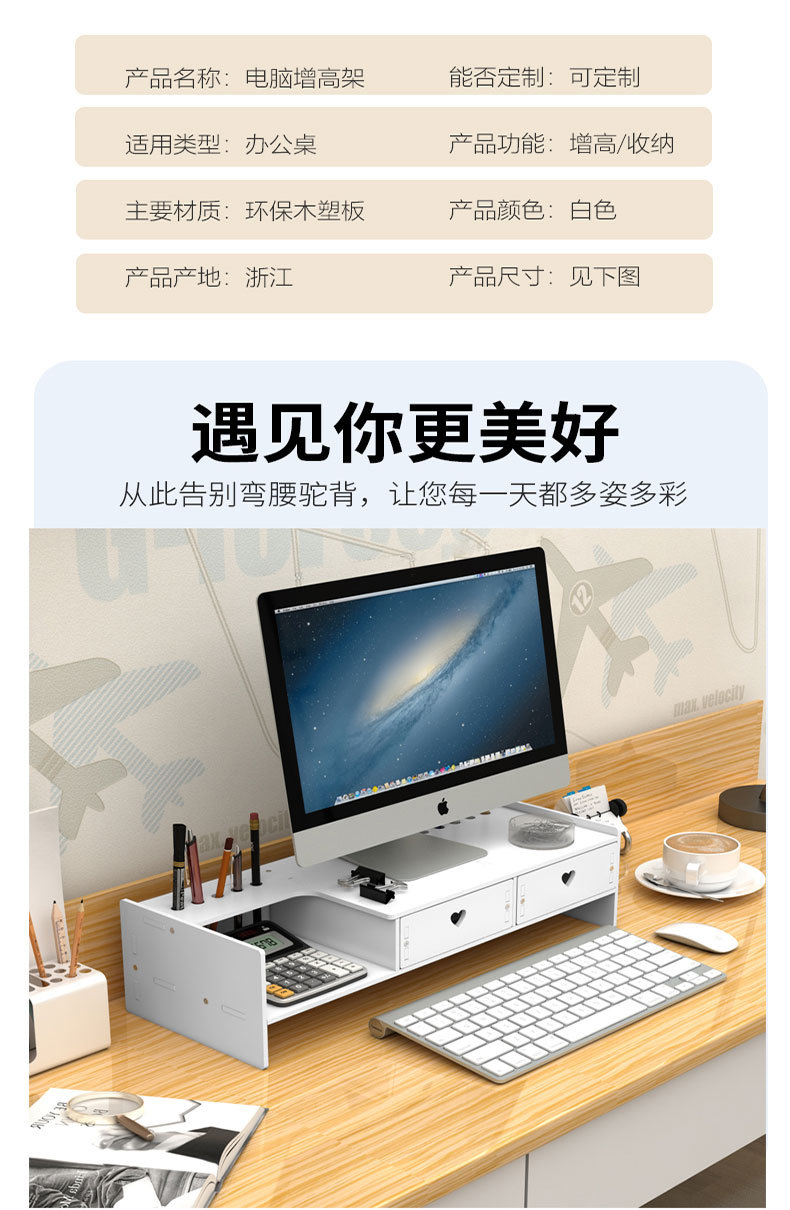 컴퓨터 높은 랙 데스크탑 모니터 브래킷 사무용품 서랍 스토리지 박스 패드 하이 베이스 데스크탑 랙