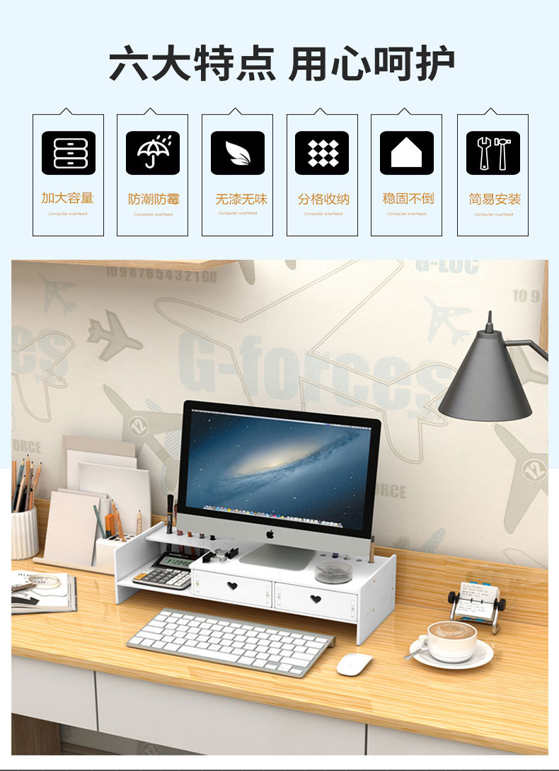 컴퓨터 높은 랙 데스크탑 모니터 브래킷 사무용품 서랍 스토리지 박스 패드 하이 베이스 데스크탑 랙스토어 가기
