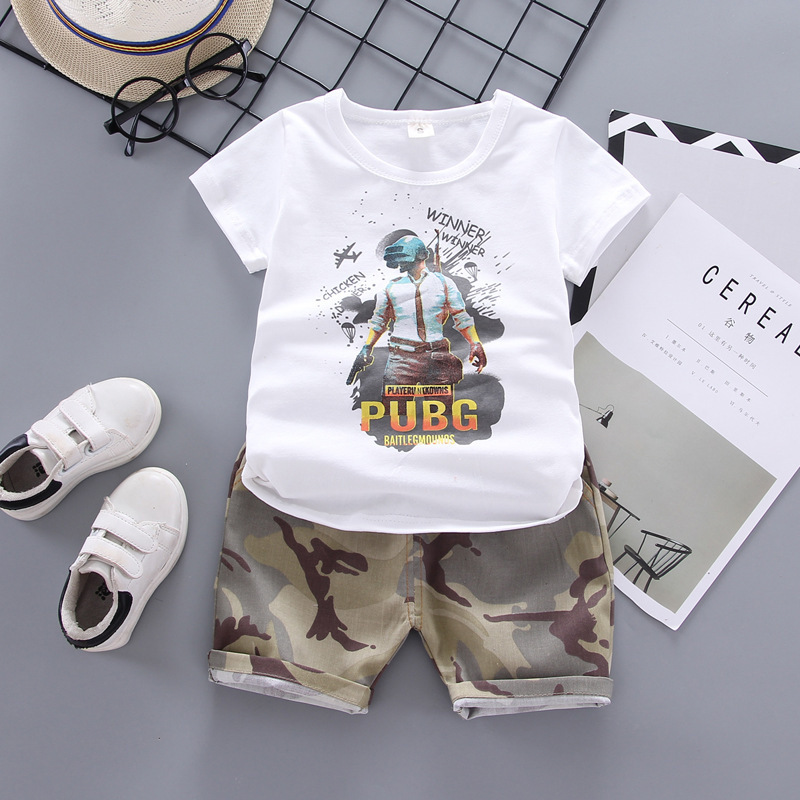 新款批发吃鸡儿童套装男小童圆领短袖迷彩夏装2021宝宝T恤休闲潮吃鸡打枪