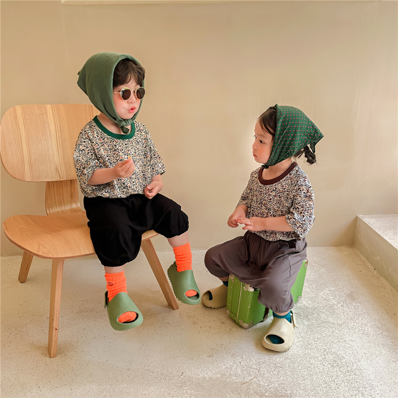 Jiaye 어린이 2024 년 여름 어린 시절 시폰 소년 소녀 용 반팔 티셔츠 아기 모리 플로랄 반소매 탑