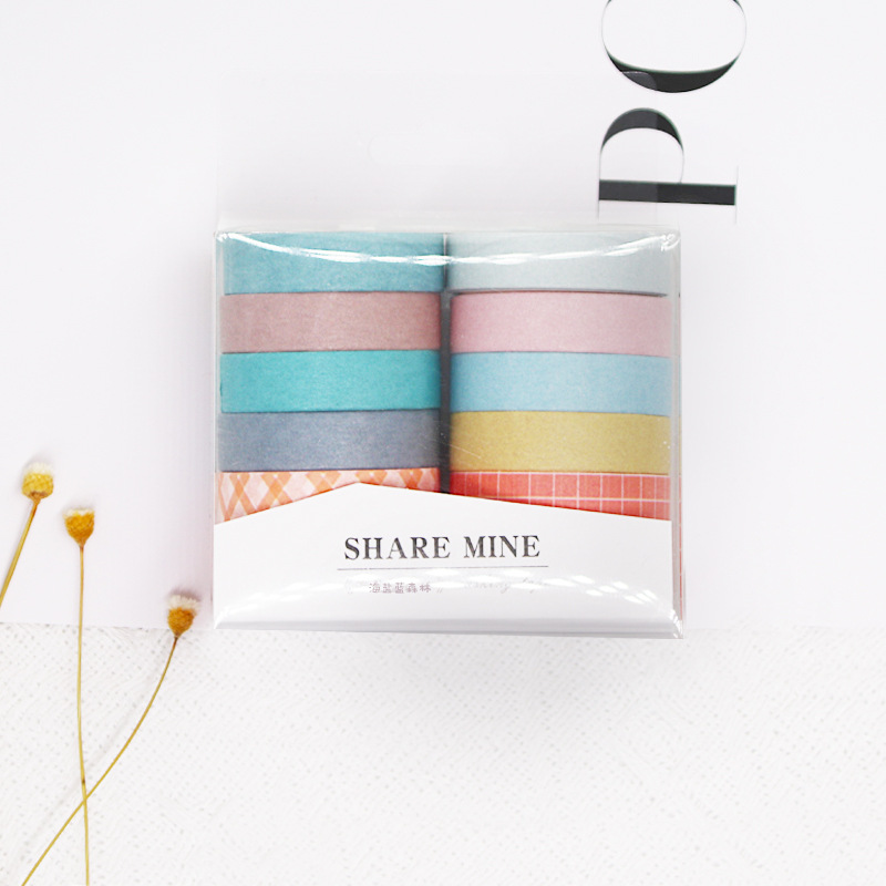 새로운 단색 소금과 종이 테이프 10 롤 세트 학생 기본 일기 재료 diy 장식 스티커
