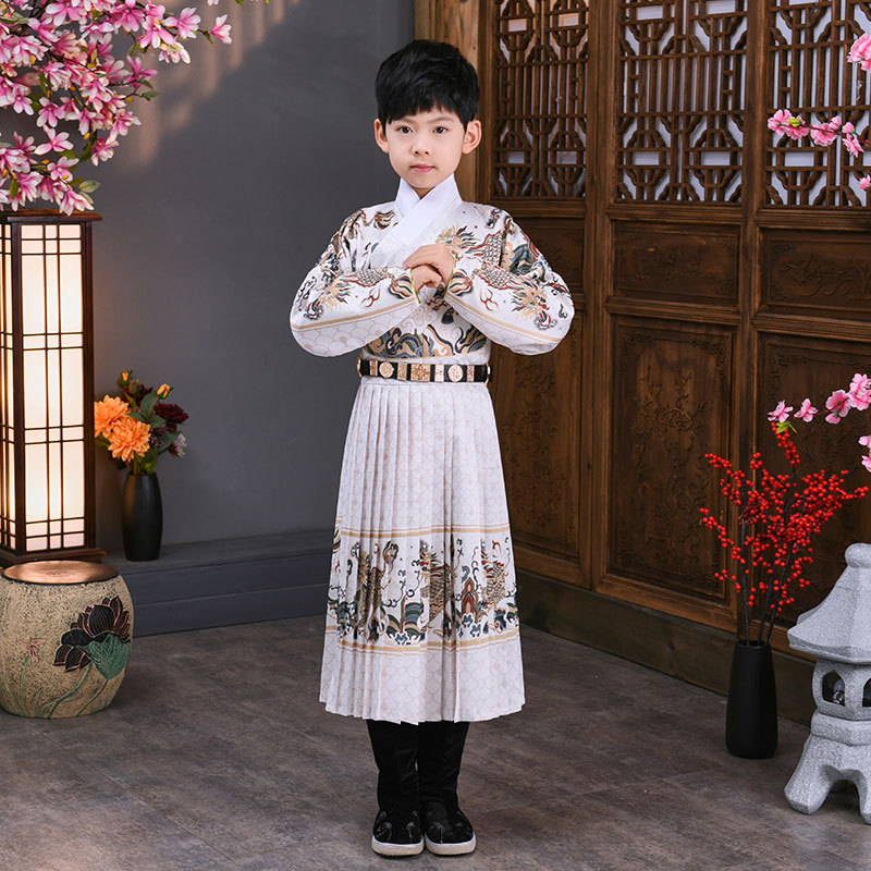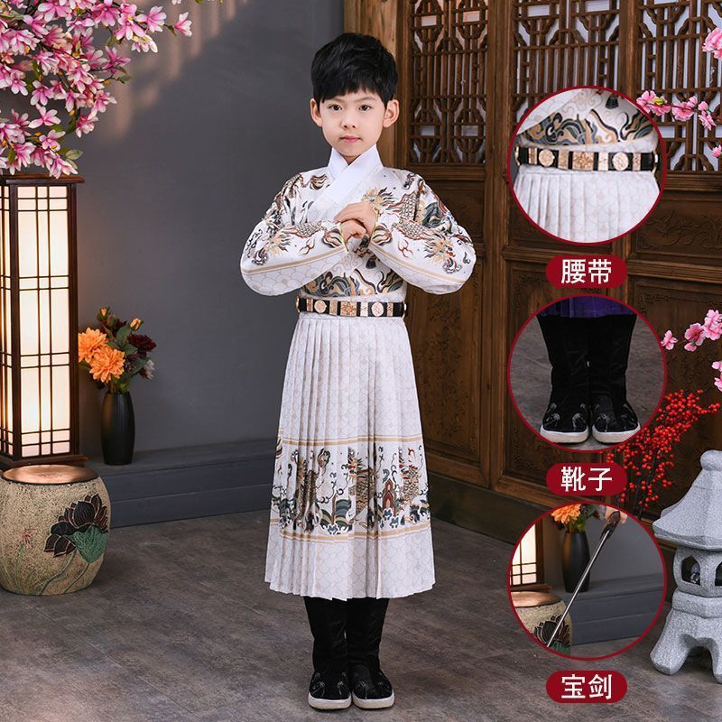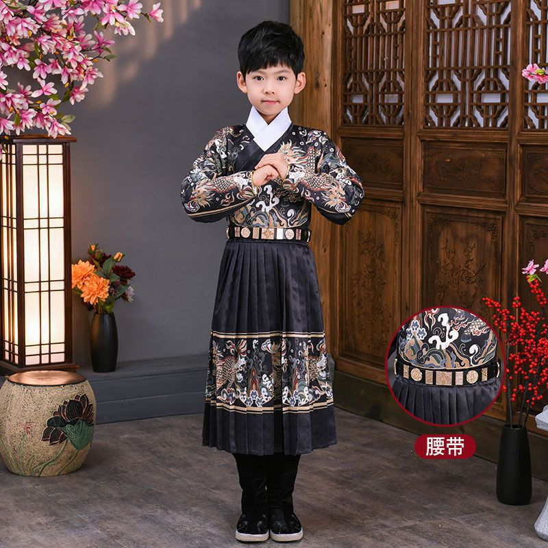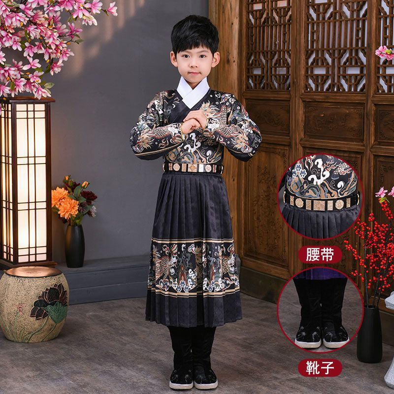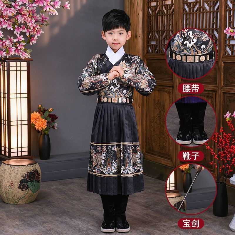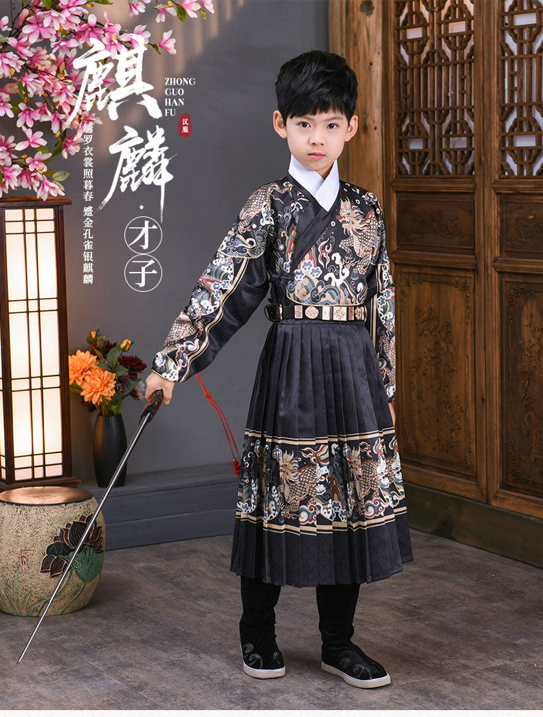 어린이 고대 의상 한푸 소년의 무술 중국 스타일 Jinyewei 파이썬 가운 플라잉 물고기 의류 기린 밍 스타일 인계 칼라 한푸스토어 가기