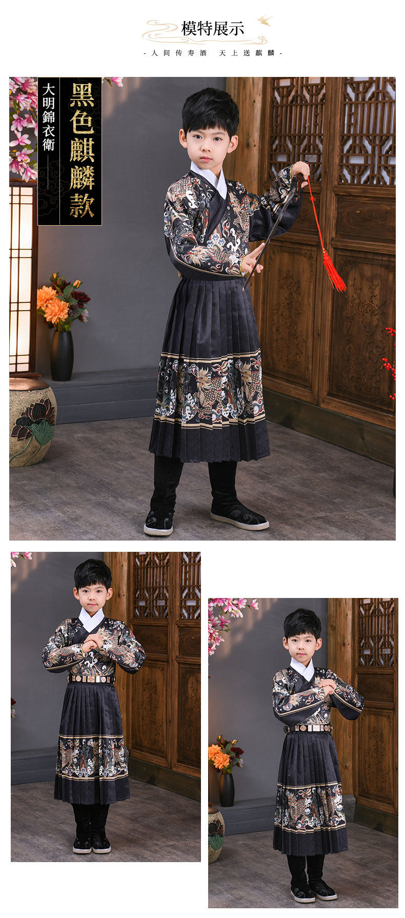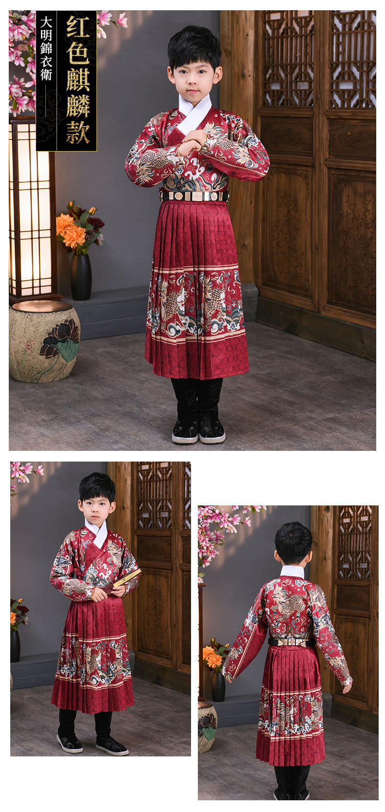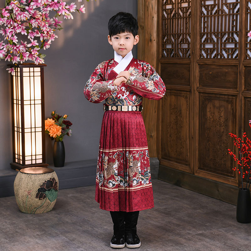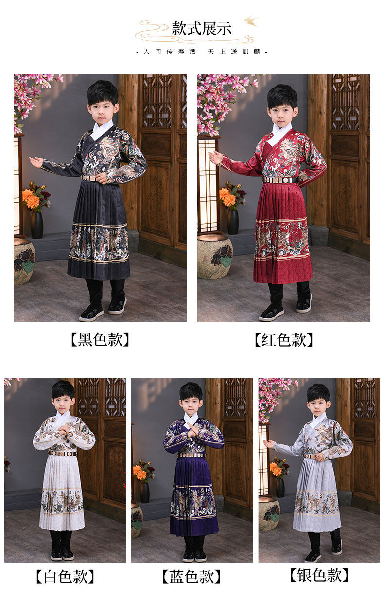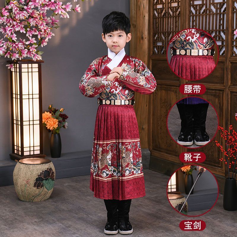 어린이 고대 의상 한푸 소년의 무술 중국 스타일 Jinyewei 파이썬 가운 플라잉 물고기 의류 기린 밍 스타일 인계 칼라 한푸스토어 가기
