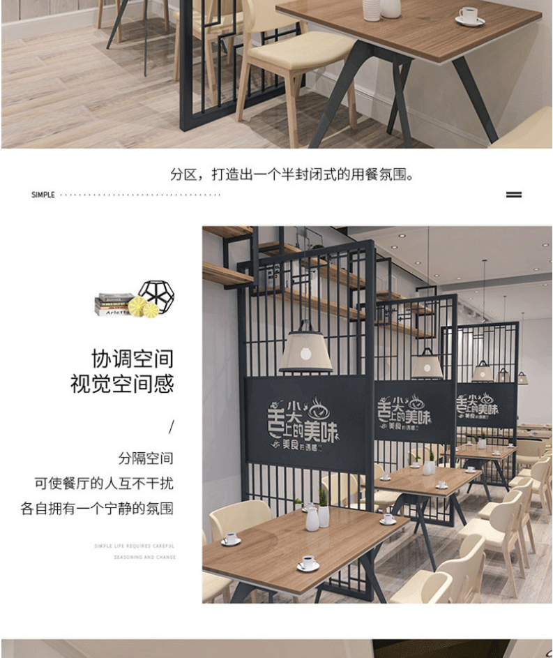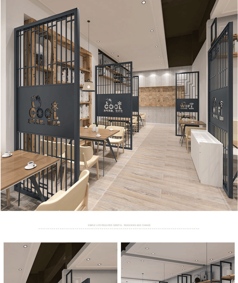산업 스타일 레스토랑 스페이스 칸막이 사무실 양면 철제 플로어 스크린 맞춤형 레저 룸 칸막이 벽