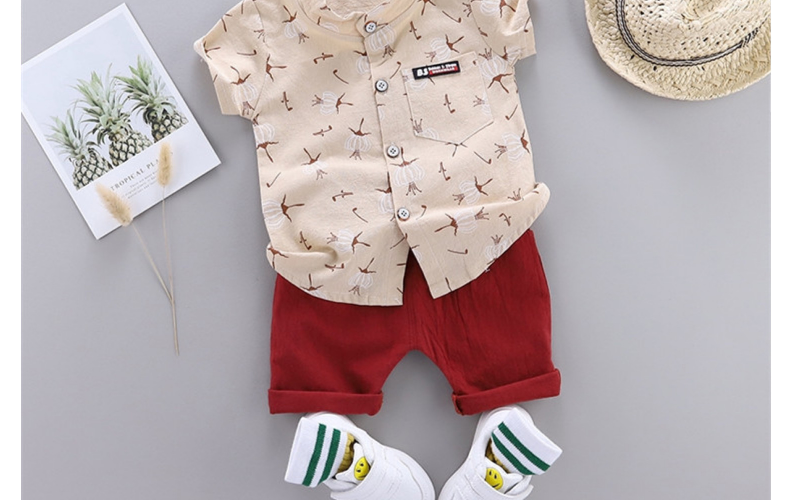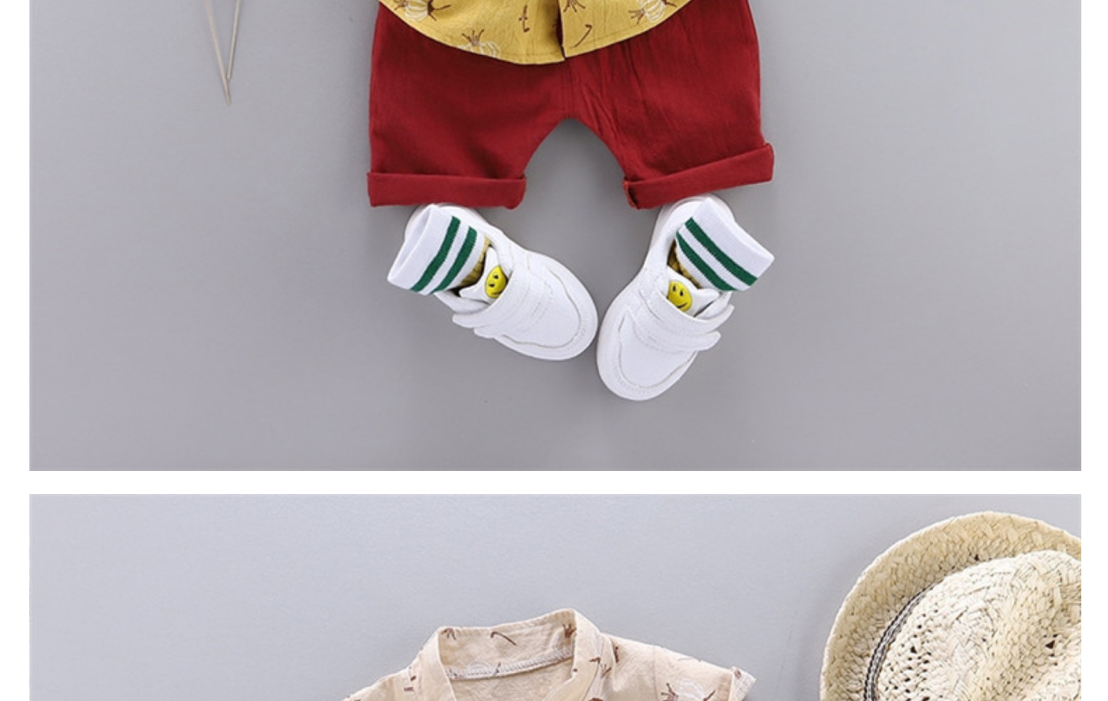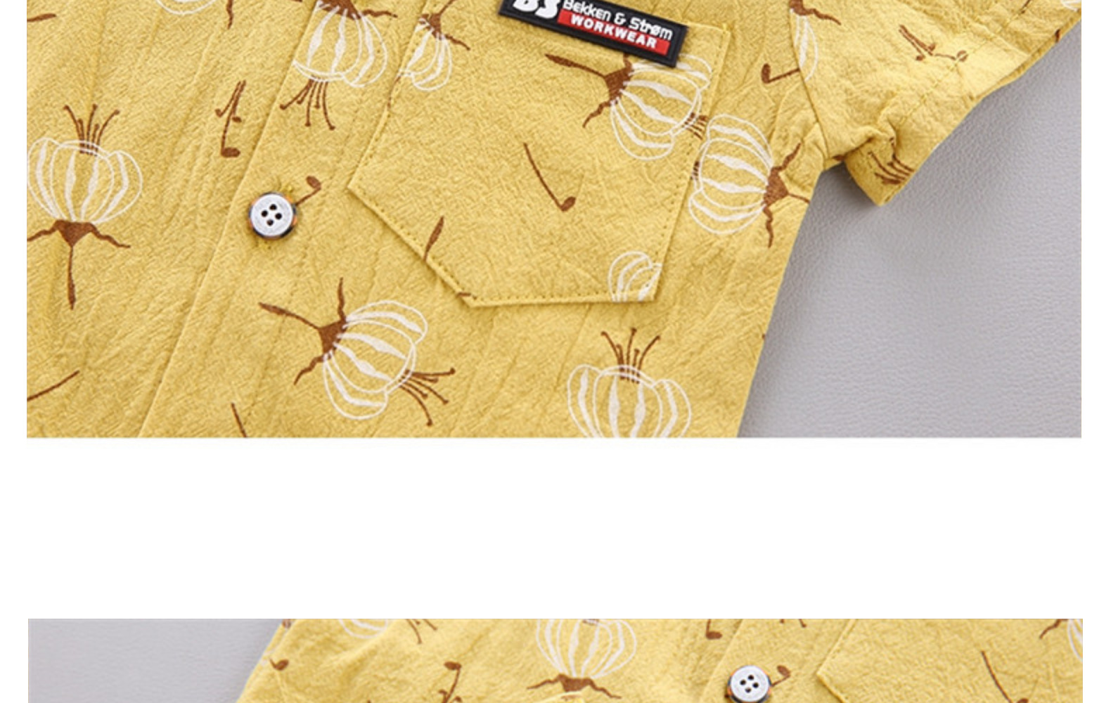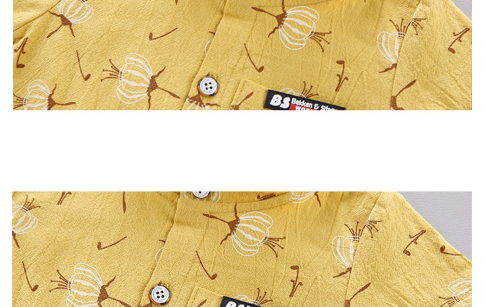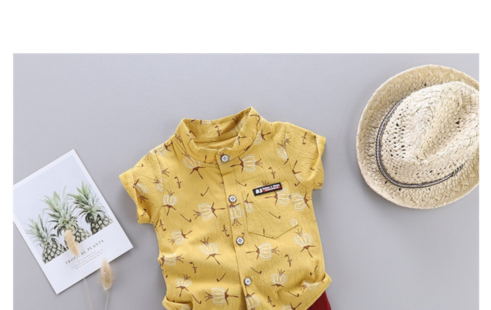 儿童套装男小童翻领短袖衬衣柚子熊夏装新款宝宝蒲公英衬衫休闲潮
