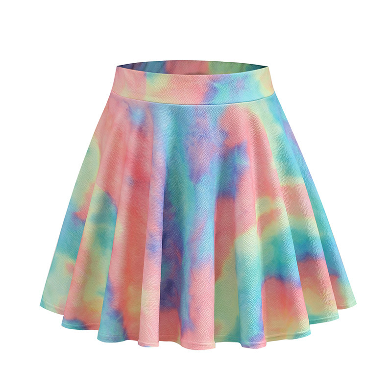 【卖 点】 时尚扎染印花,超大摆伞裙,腰部橡筋包容性好,面料厚实