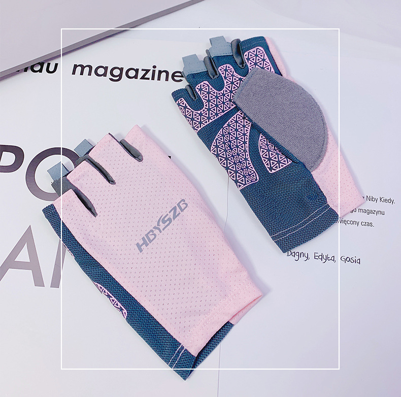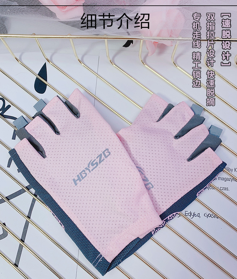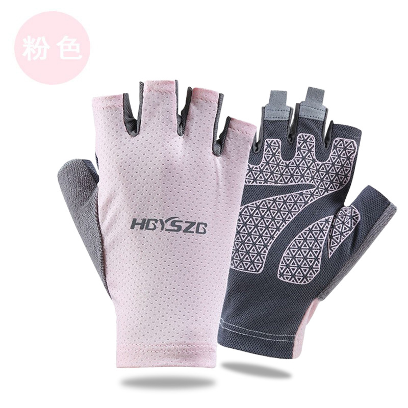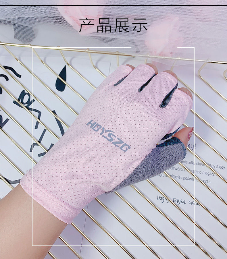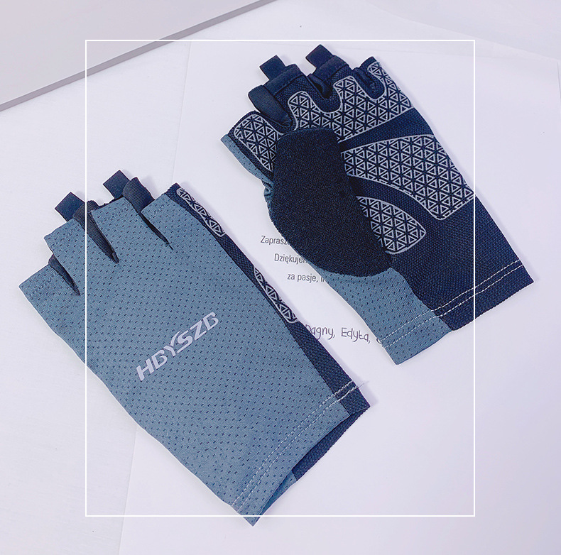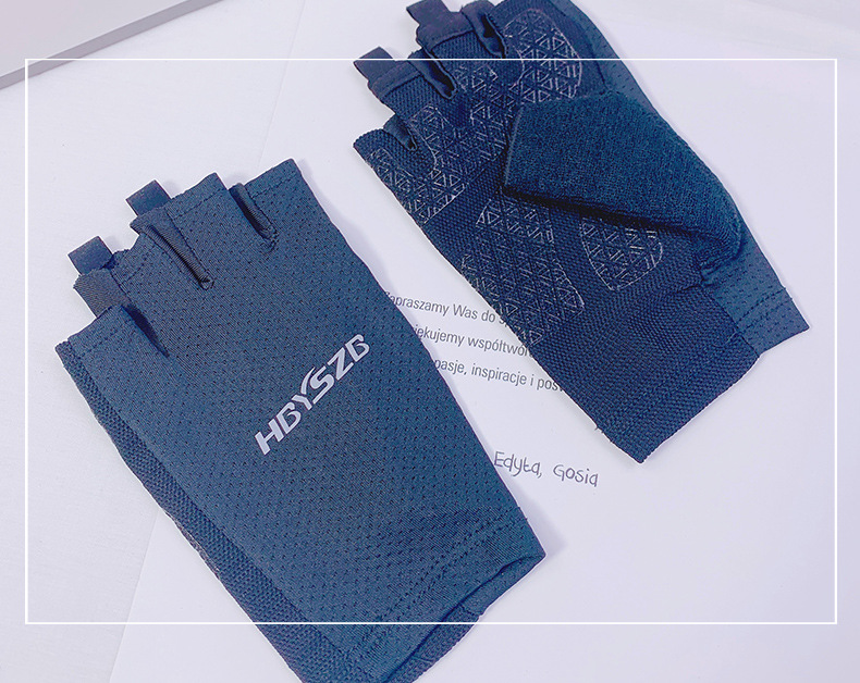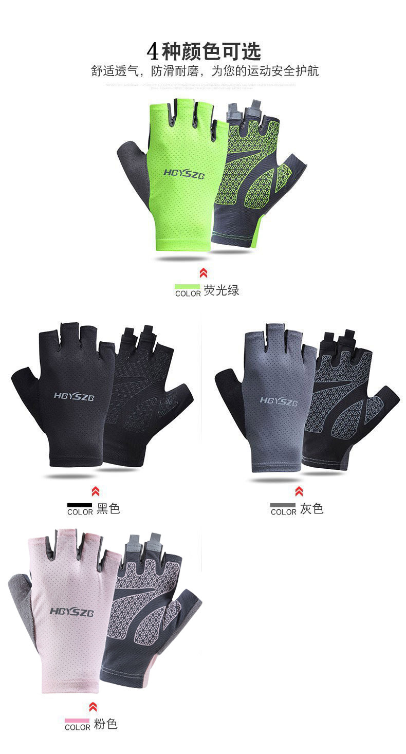 여름 남성과 여성의 얼음 실크 반 손가락 장갑 얇은 반사 로고 높은 탄성 통기성 빠른 건조 사이클링 미끄럼 방지 스포츠 피트니스스토어 가기
