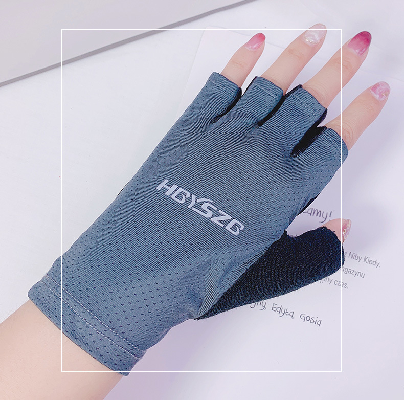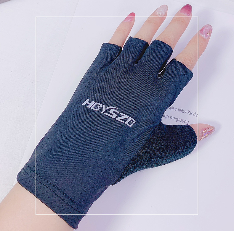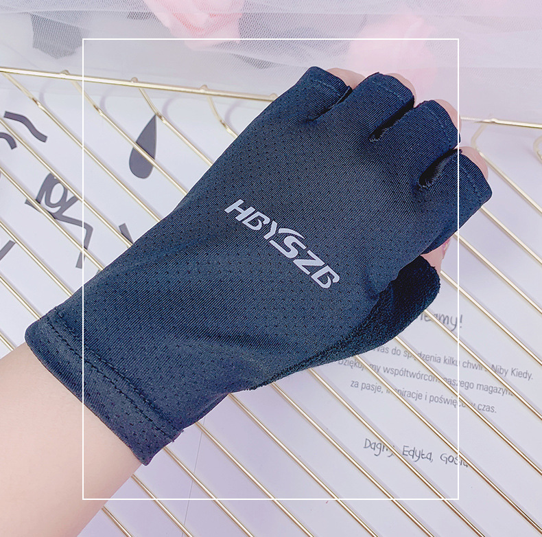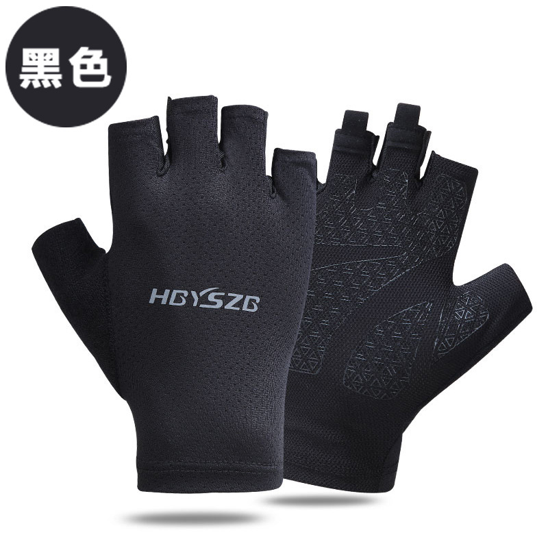 여름 남성과 여성의 얼음 실크 반 손가락 장갑 얇은 반사 로고 높은 탄성 통기성 빠른 건조 사이클링 미끄럼 방지 스포츠 피트니스