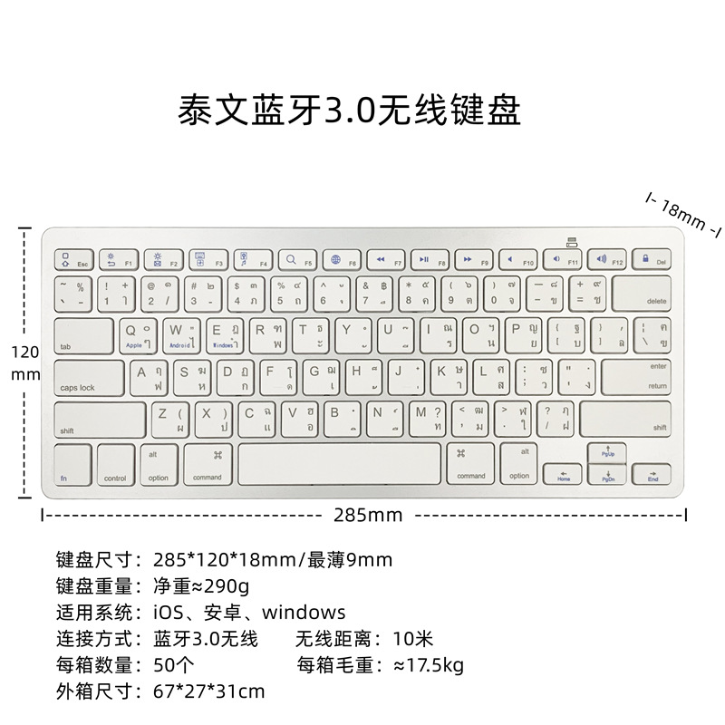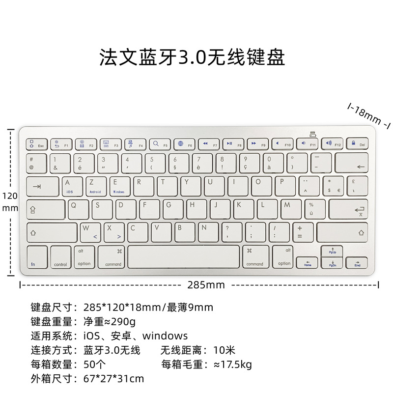 键盘尺寸:285*120*18mm/最薄9mm