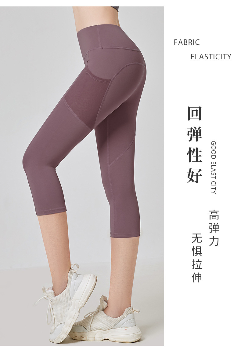 Juyitang 메쉬 포켓 요가 자른 바지 2025 하이 웨이스트 엉덩이 리프팅 7 포인트 요가 바지 피트니스 스포츠 스타킹