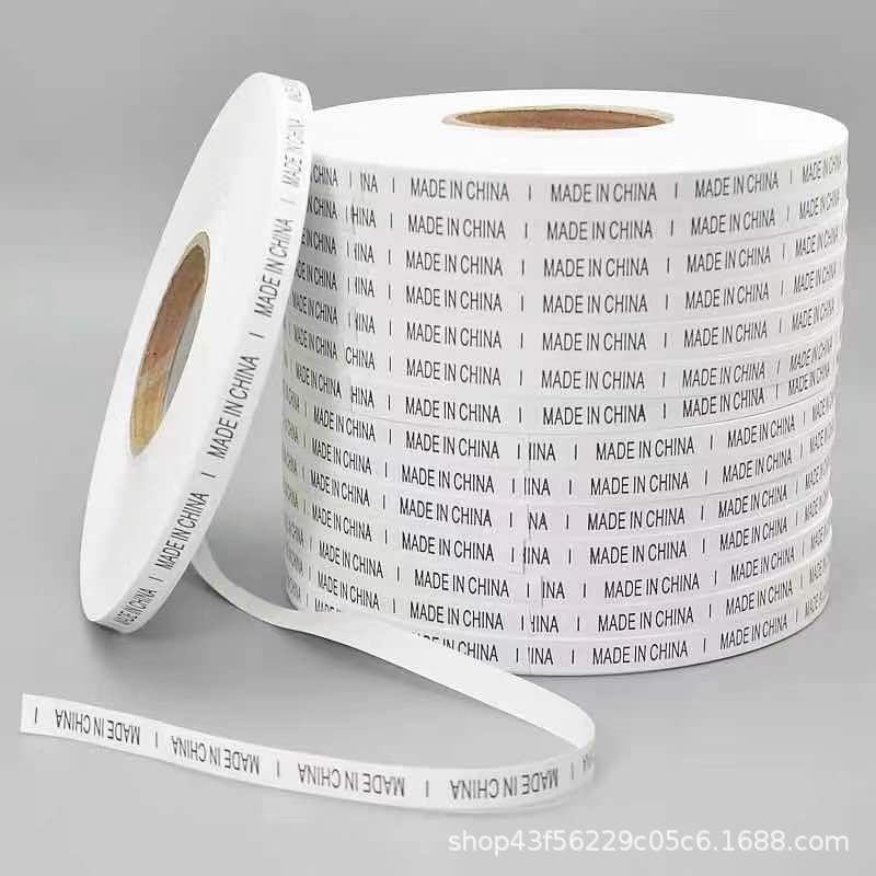 现货规格:Made in china产地标 1x4cm 腈纶带水洗标识