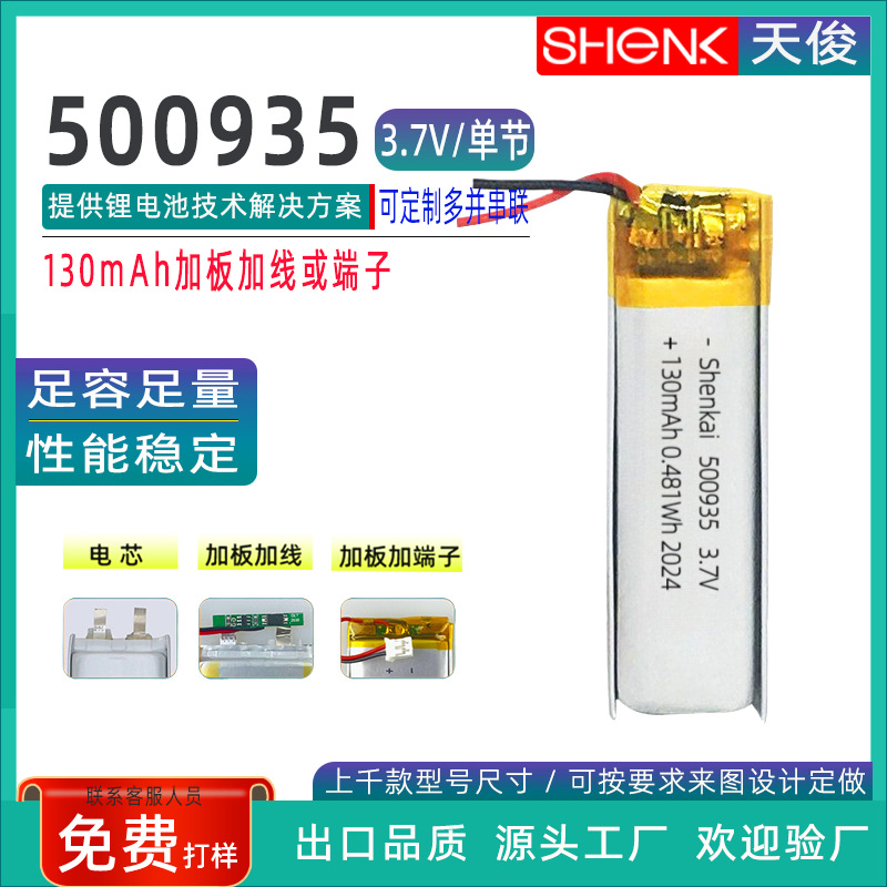 • 500935 130mAh 3.7V 보드 콘센트 또는 터미널