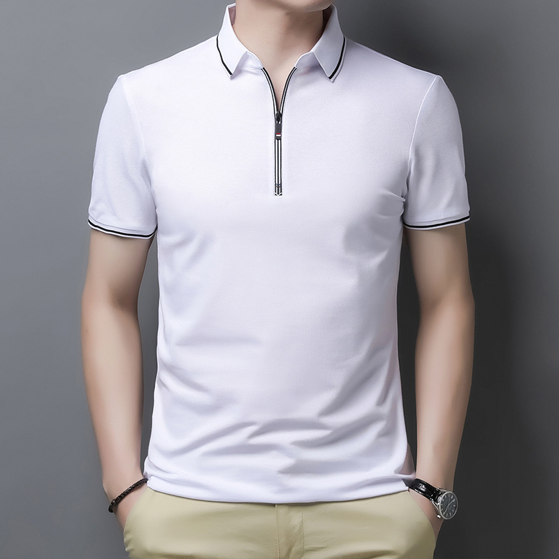 2022 여름 신작 남성 반팔 티셔츠 옷깃 반팔 하프 지퍼 청년 및 중년 패션 캐주얼 폴로 셔츠 남성용스토어 가기
