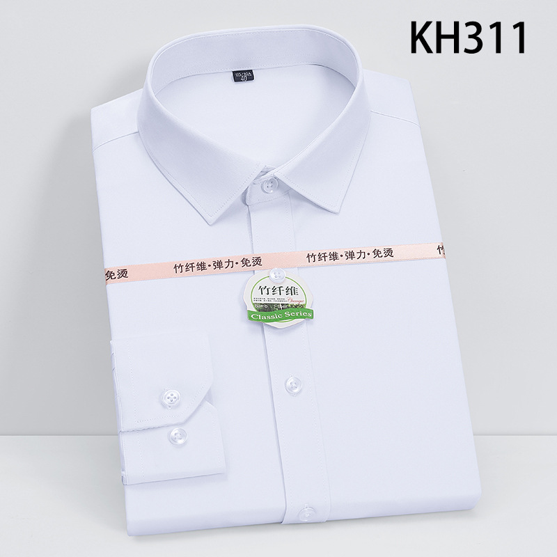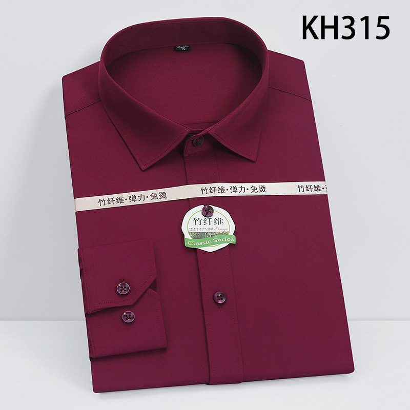 【신축성】남성용 긴팔 셔츠 얇은 대나무 섬유 포켓 없는 사계절 셔츠 비즈니스 셔츠