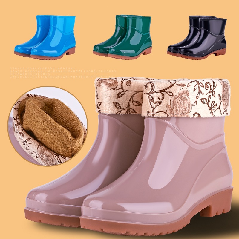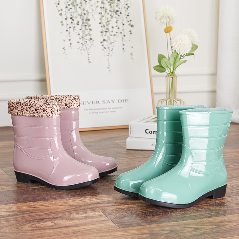 • 中筒四季雨鞋女保暖专用塑料鞋中帮防滑水靴厨房加绒雨靴工作胶鞋