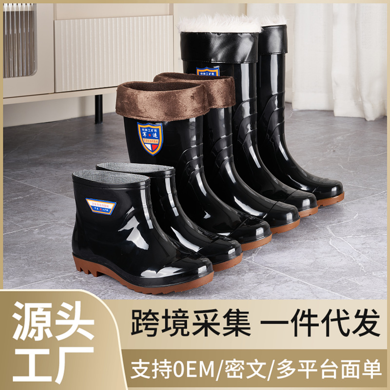 • 耐磨男士高筒雨鞋批发雨靴防水防滑加厚绒套耐酸碱特高水鞋工地