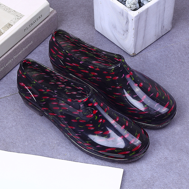 낮은 튜브 봄과 가을 비 신발 여성의 미끄럼 방지 플라스틱 물 신발 짧은 튜브 물 부츠 낮은 튜브 고무 신발 낮은 탑 주방 작업 장화