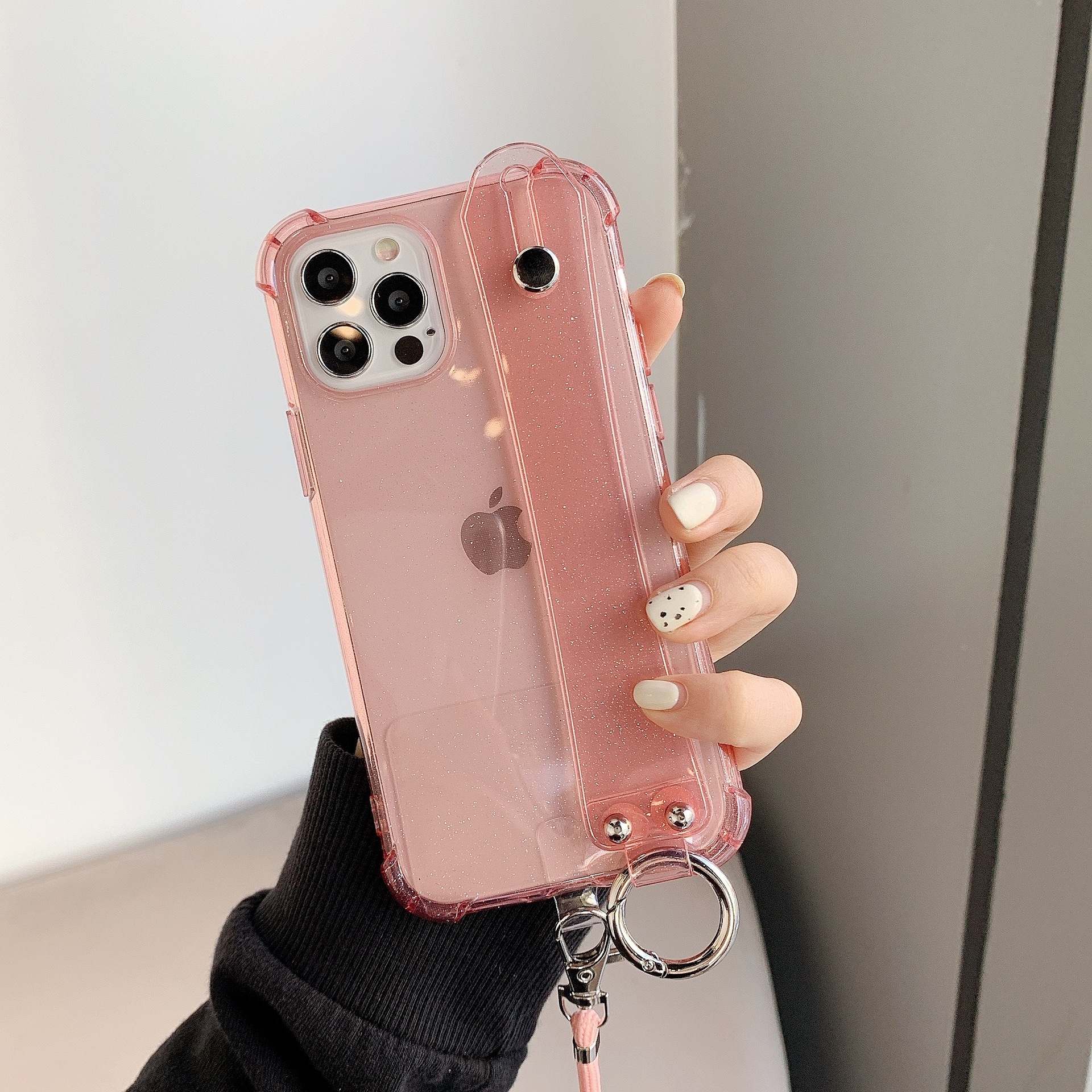Oblique Lanyard 손목 밴드 애플 13 15promax 휴대 전화 케이스 iPhone14plus/8 플러스 여성 XR 투명스토어 가기