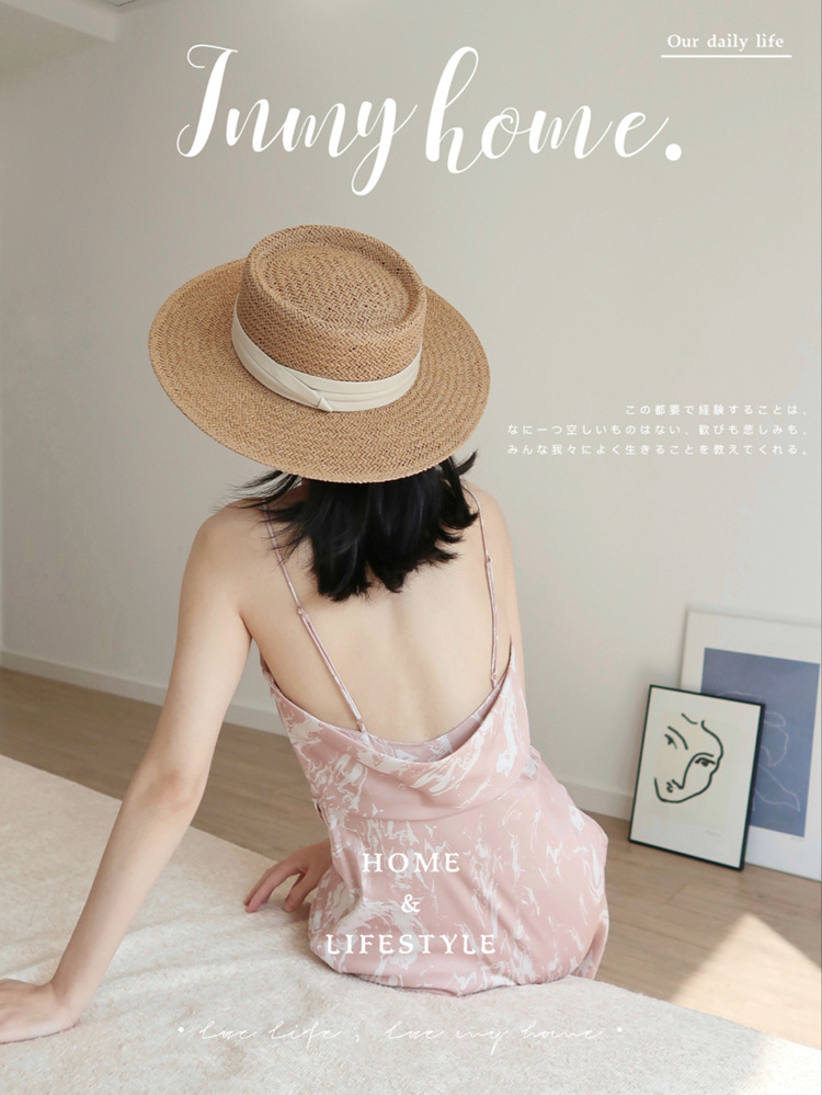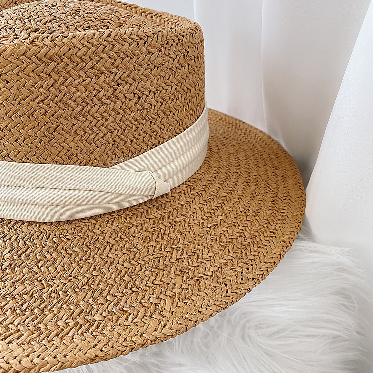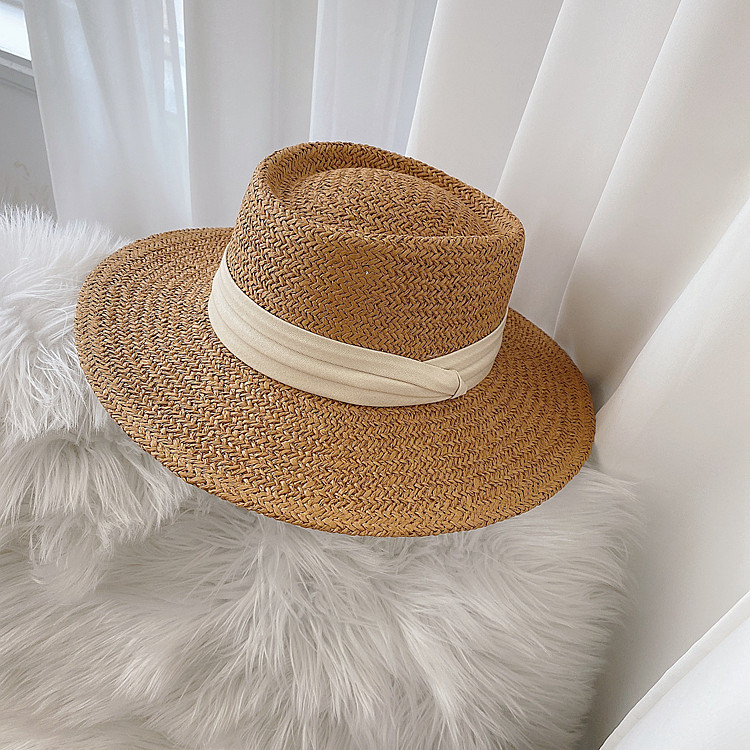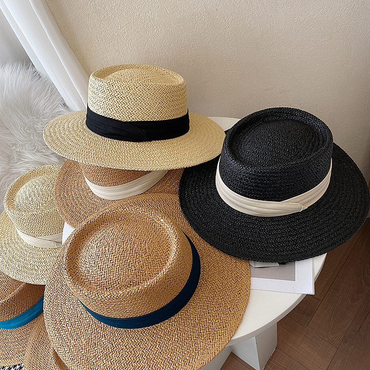 인터넷 연예인 레트로 플랫 탑 모자 여자의 여름 해변 휴가 차양 프랑스 스타일 플랫 비치 자외선 차단제 신선한 밀짚 모자