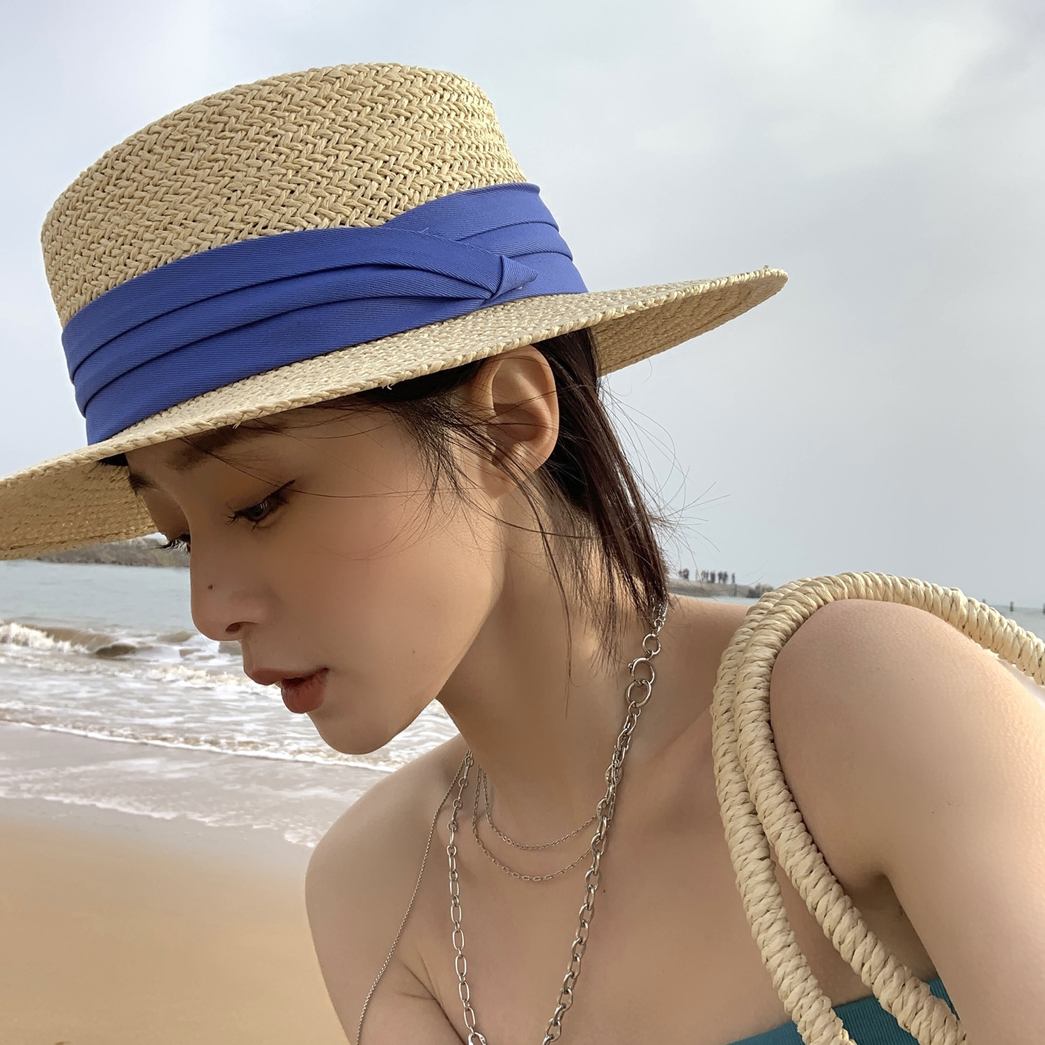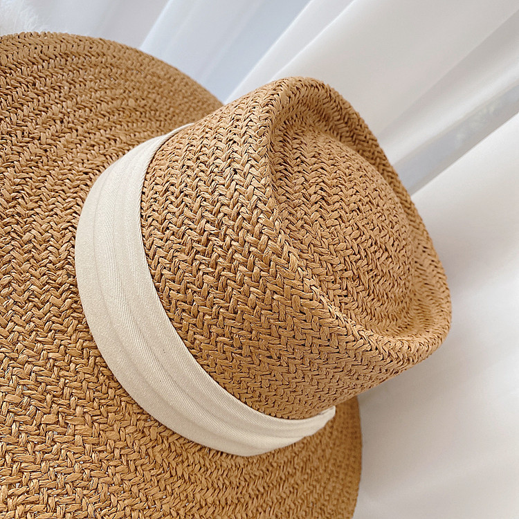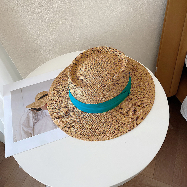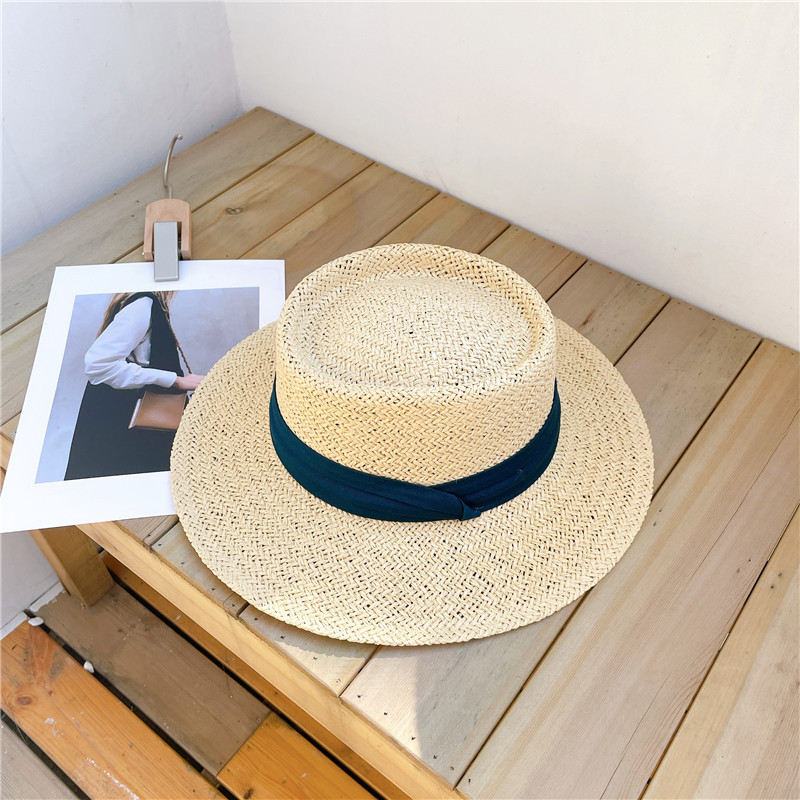 인터넷 연예인 레트로 플랫 탑 모자 여자의 여름 해변 휴가 차양 프랑스 스타일 플랫 비치 자외선 차단제 신선한 밀짚 모자스토어 가기