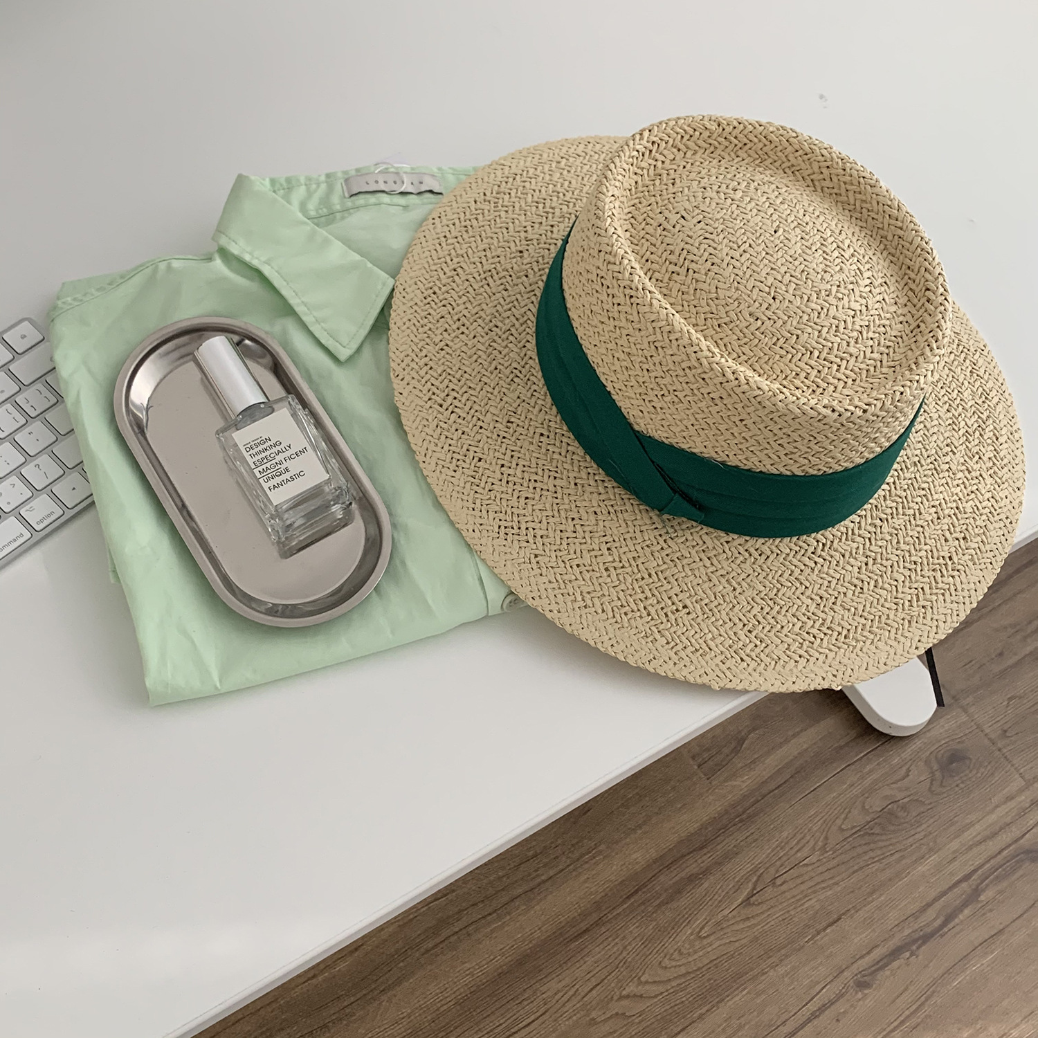 • 베이지 탑 햇-그린 벨트