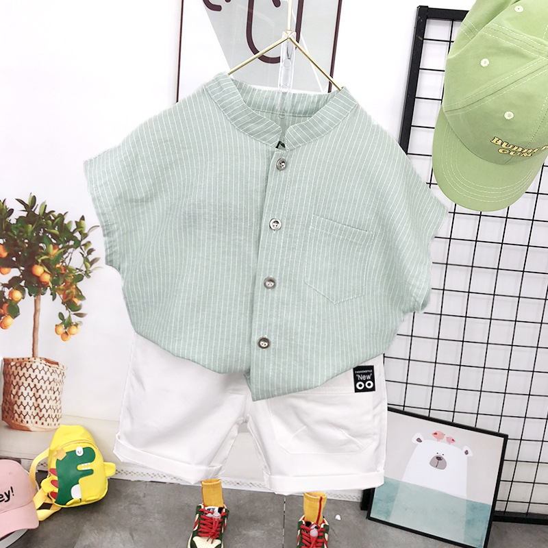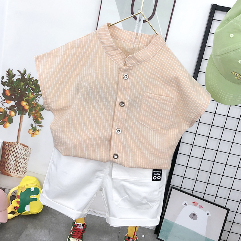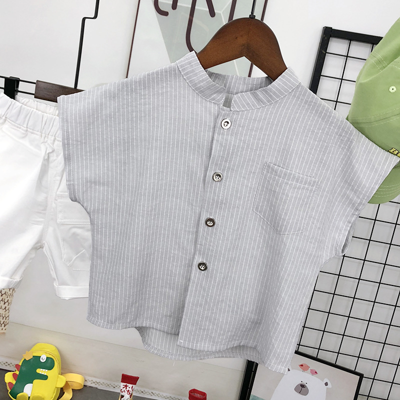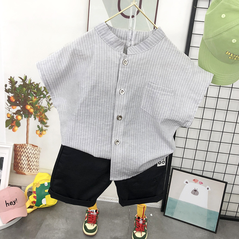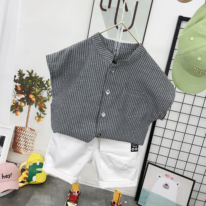 소년 여름 새로운 스타일 서양 스타일 어린이 반팔 셔츠 스트라이프 아기 셔츠 한국 스타일 어린이 칼라 캐주얼 세트스토어 가기