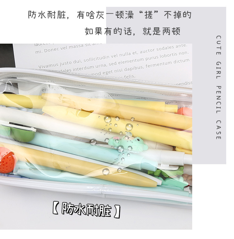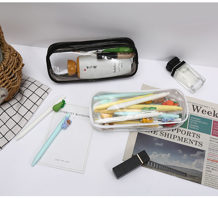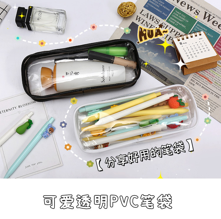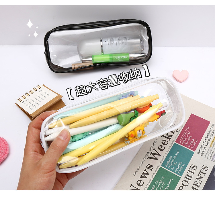 국경 간 투명 학생 PVC 필통 사용자 정의 그물 빨강 문구 소녀 INS 메이크업 대용량 보관 가방 도매스토어 가기