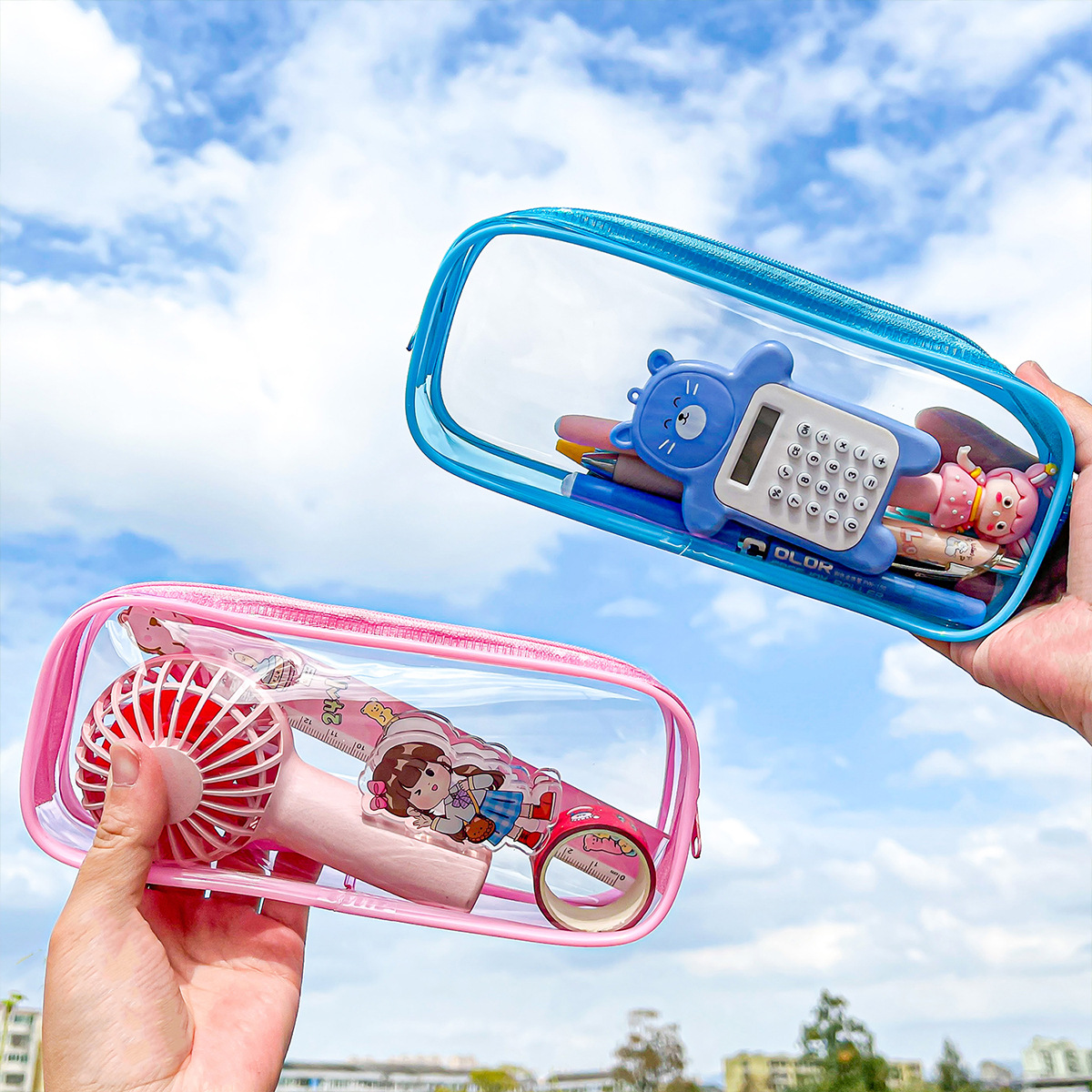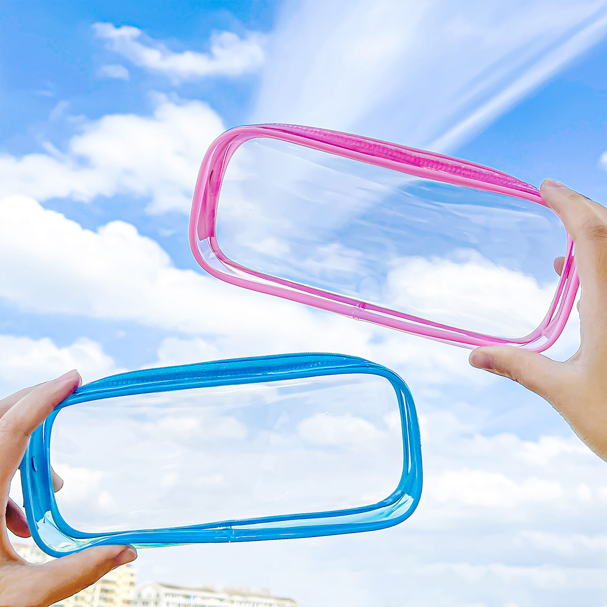 국경 간 투명 학생 PVC 필통 사용자 정의 그물 빨강 문구 소녀 INS 메이크업 대용량 보관 가방 도매