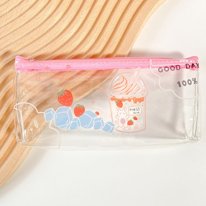 • 긴 투명 (패턴 없음)-투명 펜 가방