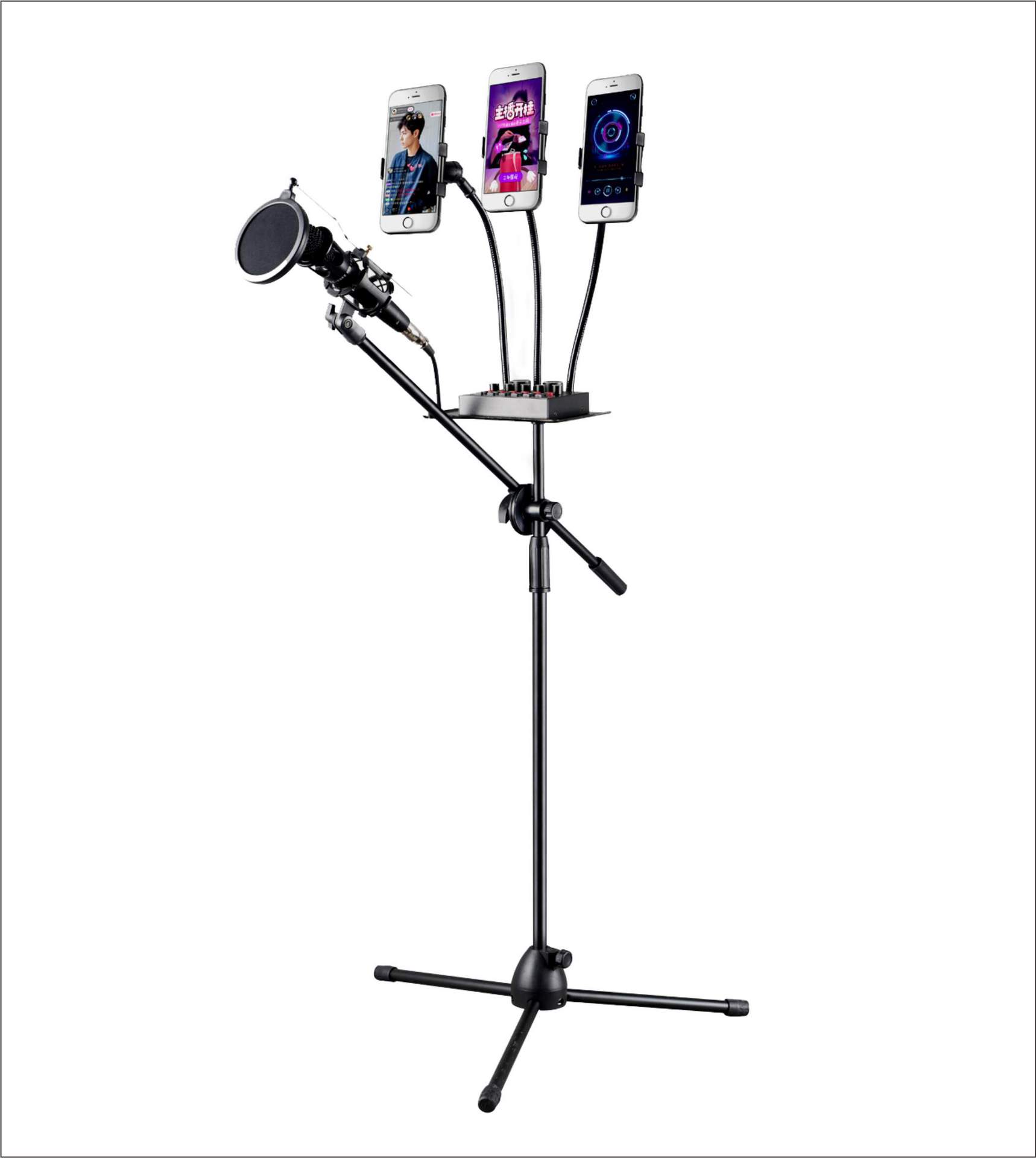 게으른 사람들을 위한 휴대폰 라이브 방송 듀얼 카메라 스탠드 마이크 노래방 싱글 카메라 스탠드 리프팅 오버헤드 마이크 스탠드 삼각대 촬영