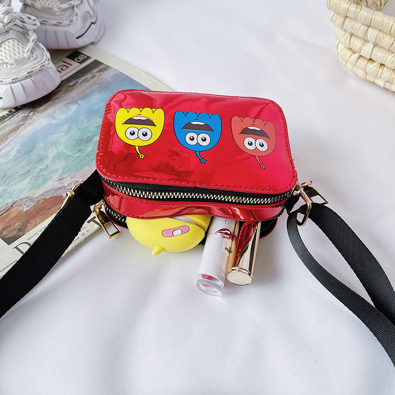 어린이 가방 2023 새로운 한국 미니 아기 어깨 가방 만화 크로스 바디 레이저 작은 사각형 가방 PU 동전 지갑