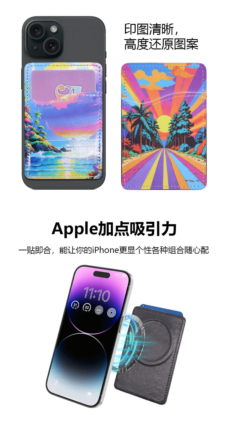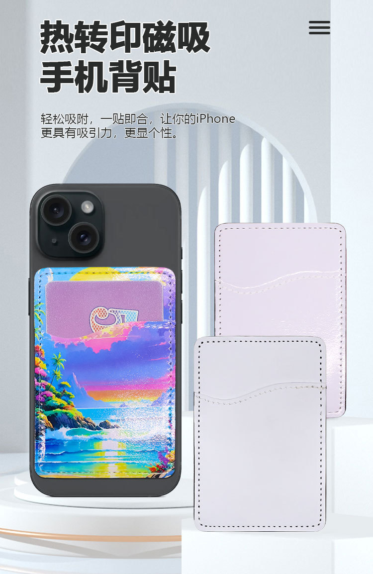 产品名称 :热转印PU皮高磁吸单面印手机背贴卡套