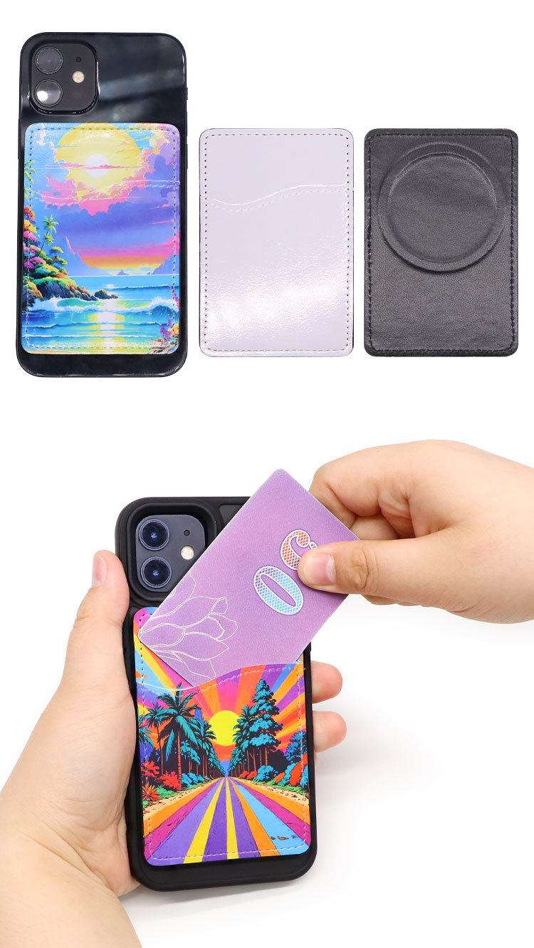 국경을 넘는 인기 상품 아마존 자석 카드 스티커 휴대폰 뒷면 스티커 승화 인쇄용 빈 휴대폰 카드 케이스 열전사 PU 카드 케이스