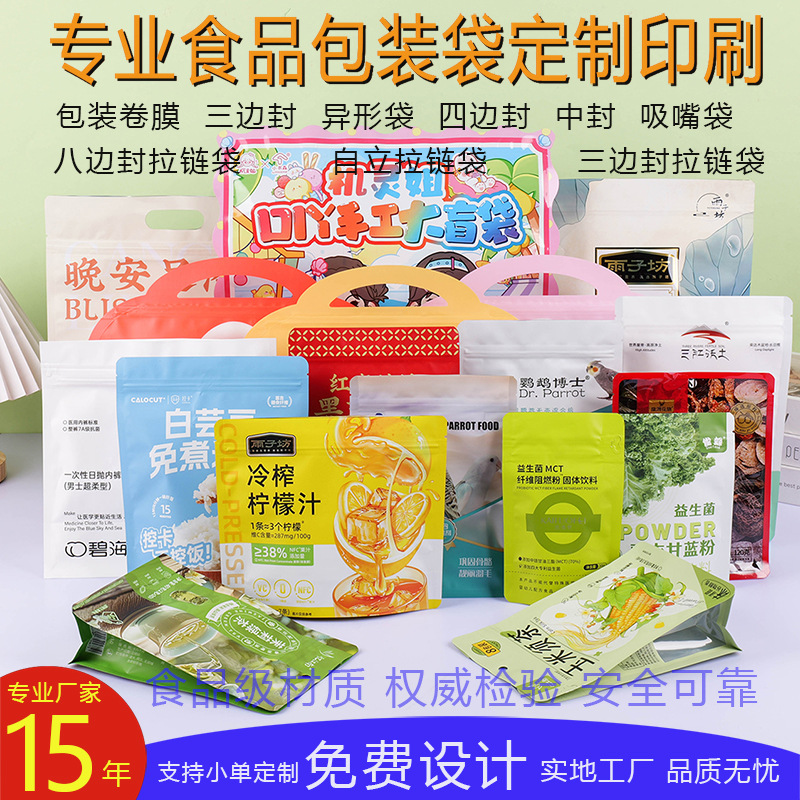 公司主要生产:八边封平底拉链袋、宠物食品包装袋、服装服饰包装袋、食品袋、大米袋、拉链袋、复合袋、自立袋、铝塑包装袋、镀铝膜阴阳袋、纯铝箔袋、真空袋、高温蒸煮袋、化肥鉰料袋、茶叶袋、日化洗涤用品包装等-----多年来我公司在市场经济的大潮中积极探索,勇于创新,并且积累了丰富的经验。公司将继续以追求创新、质量为主的作风接受新的挑战。不断的创新和追求更高的产品质量,是我公司坚持不懈的目标。完善的服务与合理的价格是我公司郑重提出的承诺。
