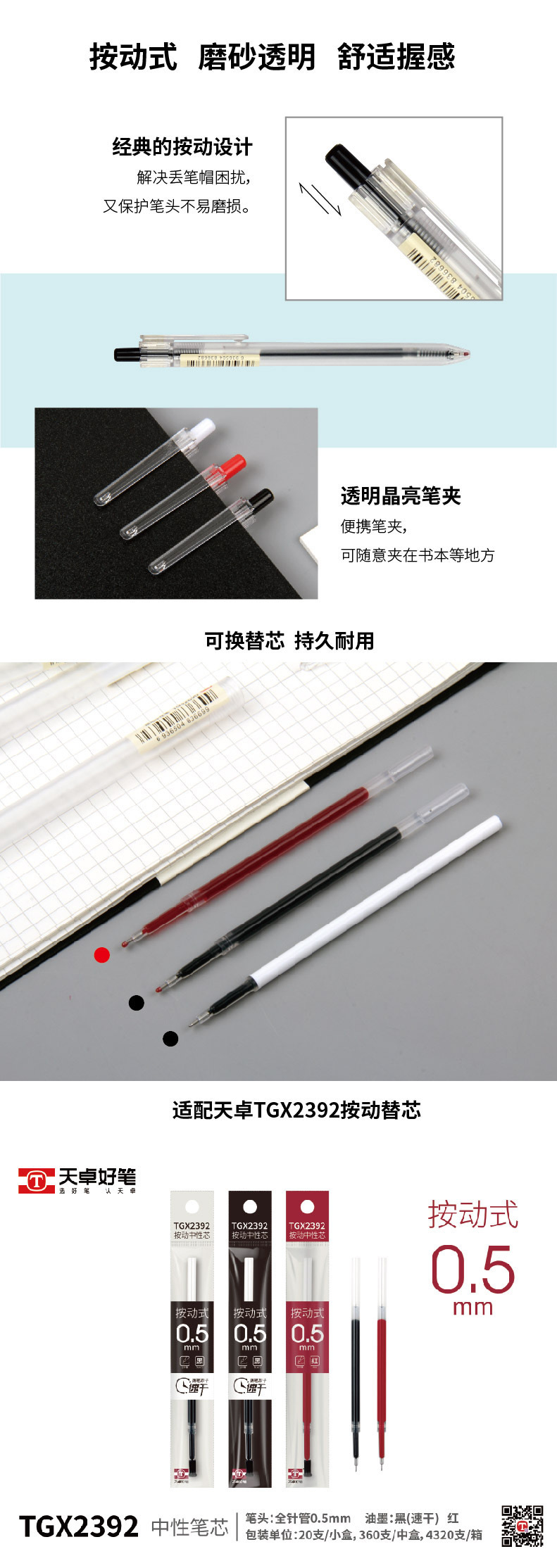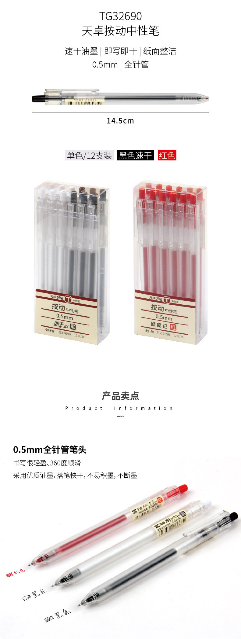 Tianzhuo 32690 오리지널 프레스 젤 펜 인쇄되지 않은 학생 투명 속건 탄소 펜 0.5 테스트 펜 좋은 제품스토어 가기