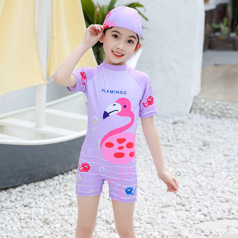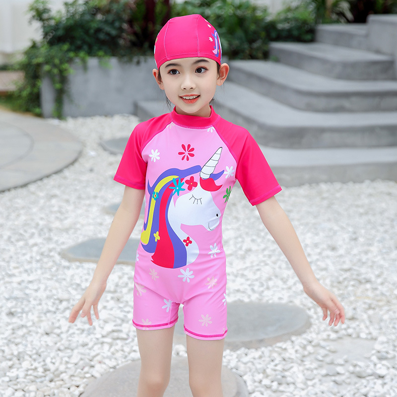 새로운 여아 수영복 어린이 공주 원피스 아기 어린이 자외선 차단제 속건 만화 백조 온천 수영복