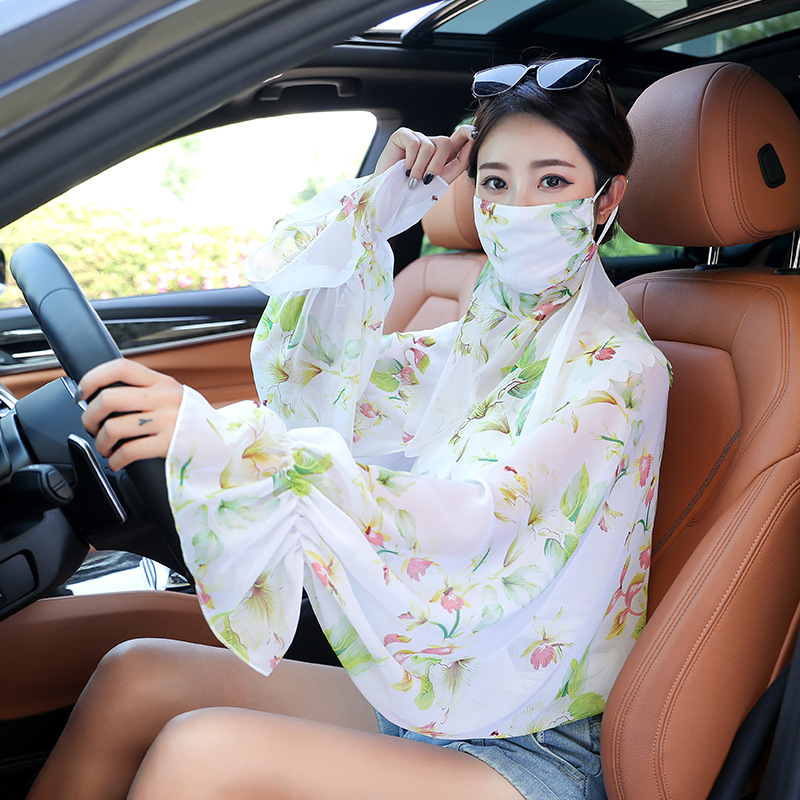 자외선 차단제 숄 대형 마스크 목 보호 통합 쉬폰 운전 배터리 자동차 자외선 차단제 의류 쉬폰 셔츠 긴팔 실크 스카프
