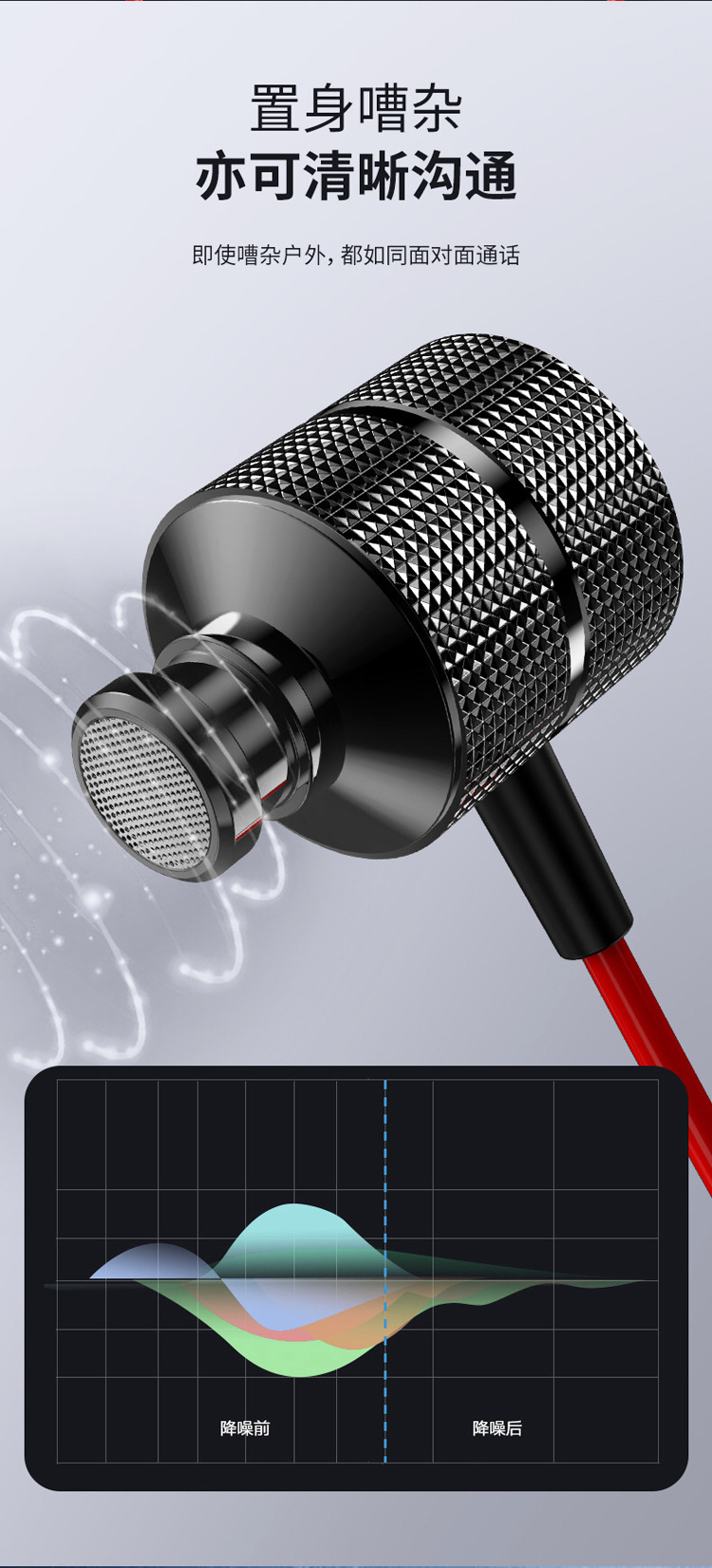 2019 새로운 패션 소음 감소 먹는 치킨 인 이어 서브 우퍼 유선 하이 퀄리티 노래방 휴대 전화 컴퓨터 금속 헤드폰