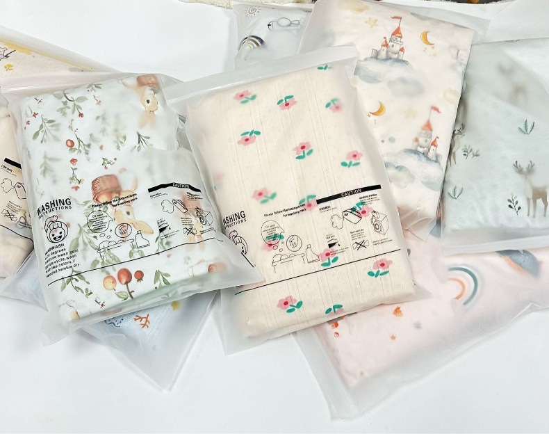 双面磨砂opp袋,正面英文洗涤警示语
