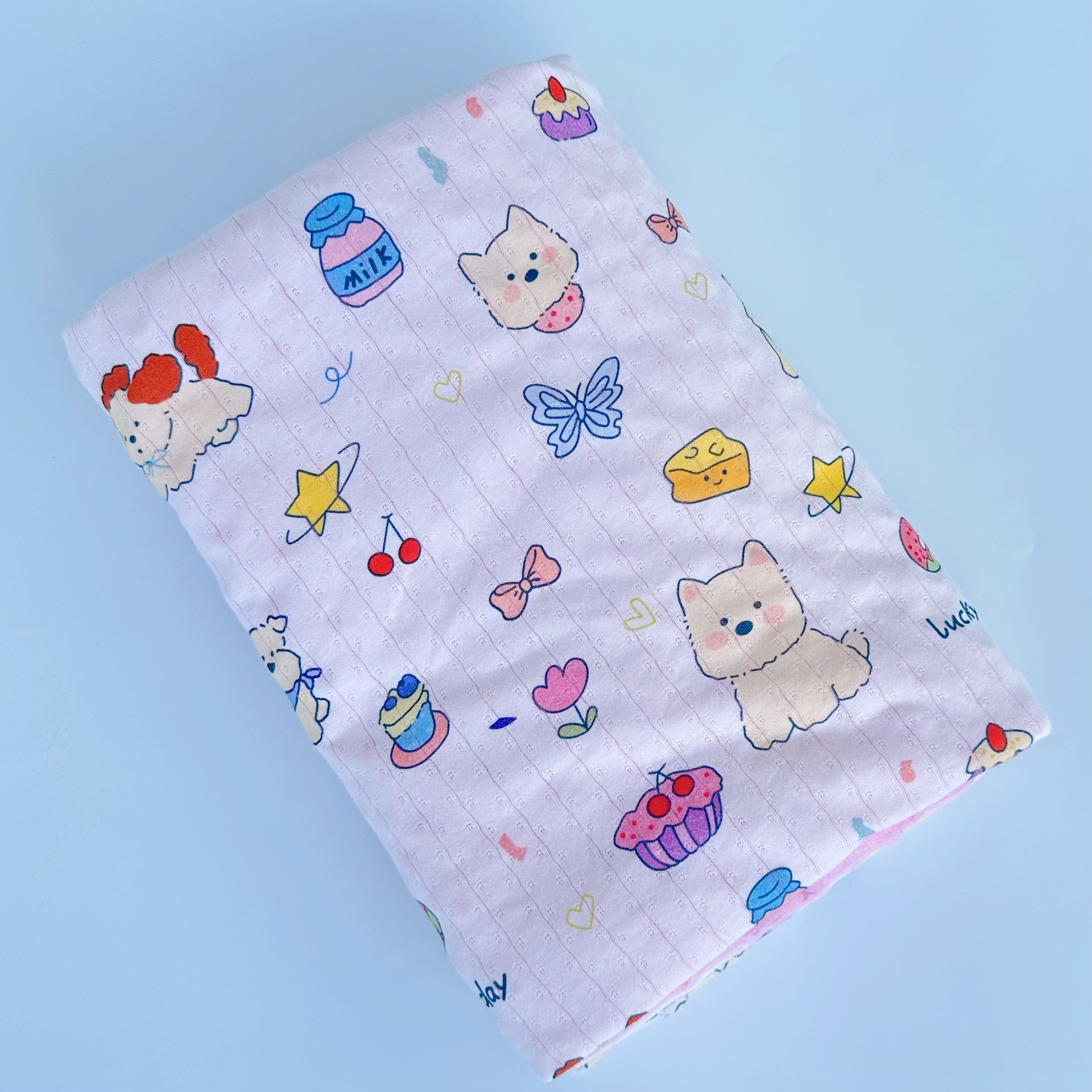 材质:图案面100%棉,豆豆绒 100%聚酯纤维