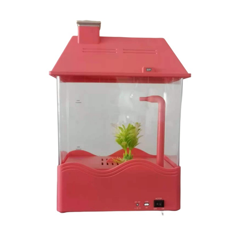 USB 어항 수족관 아기 물고기 키우기 장난감 관찰용 탁상용 금붕어 어항 전망 좋은 거북이 어항 뚜껑 포함 생태스토어 가기